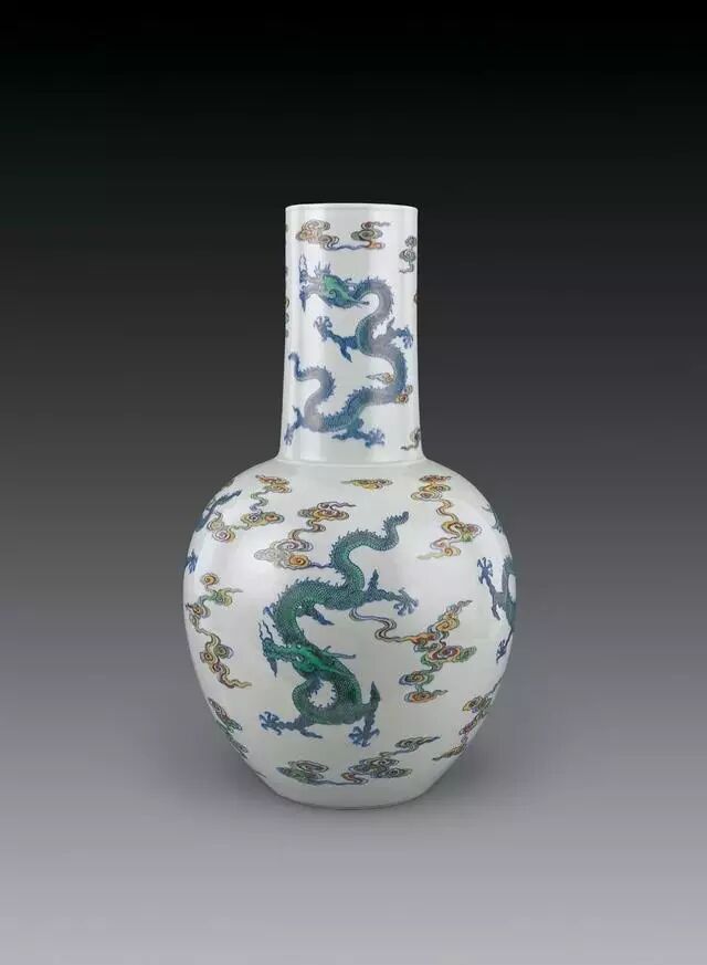 在斗彩基础上,瓷器生产过程中引入了珐琅彩和金彩,形成了斗彩加金彩、斗彩加珐琅彩的新工艺。斗彩瓷在原有的红、黄、绿、紫、赭色之上,又增添了粉红、胭脂、藕荷、玫瑰、湖水绿等多种颜色,更显美丽娇艳。雍正 斗彩加粉彩云龙纹双耳瓶