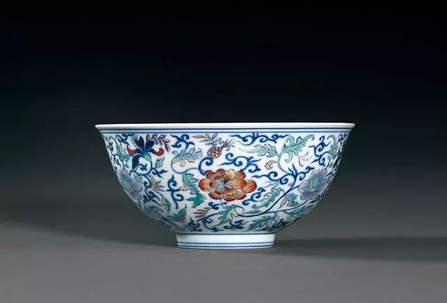 雍正斗彩和明成化斗彩相比,在纹饰布局、色彩配合及填彩工艺方面都有了进步,无论是色彩还是花纹图案都比以前更为精细,用彩更薄,色调更柔和淡雅。雍正 斗彩缠枝花卉纹碗