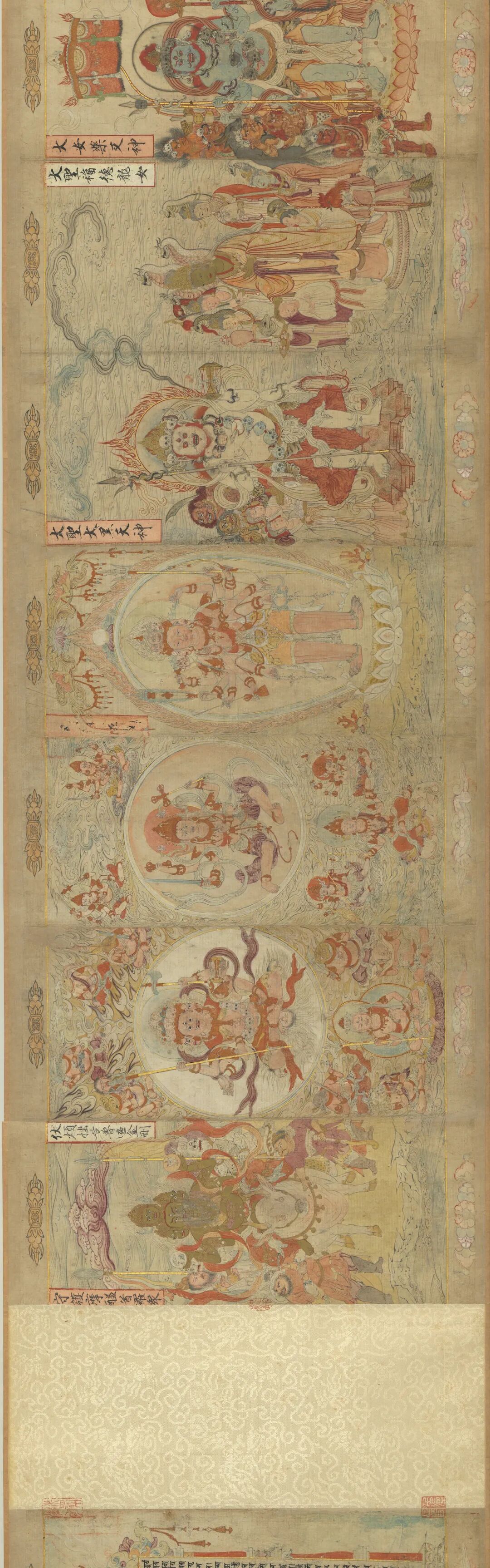 据说1962年在纽约大都会博物馆展出时,馆方打通两间展室便是为《梵像卷》全部展开。
