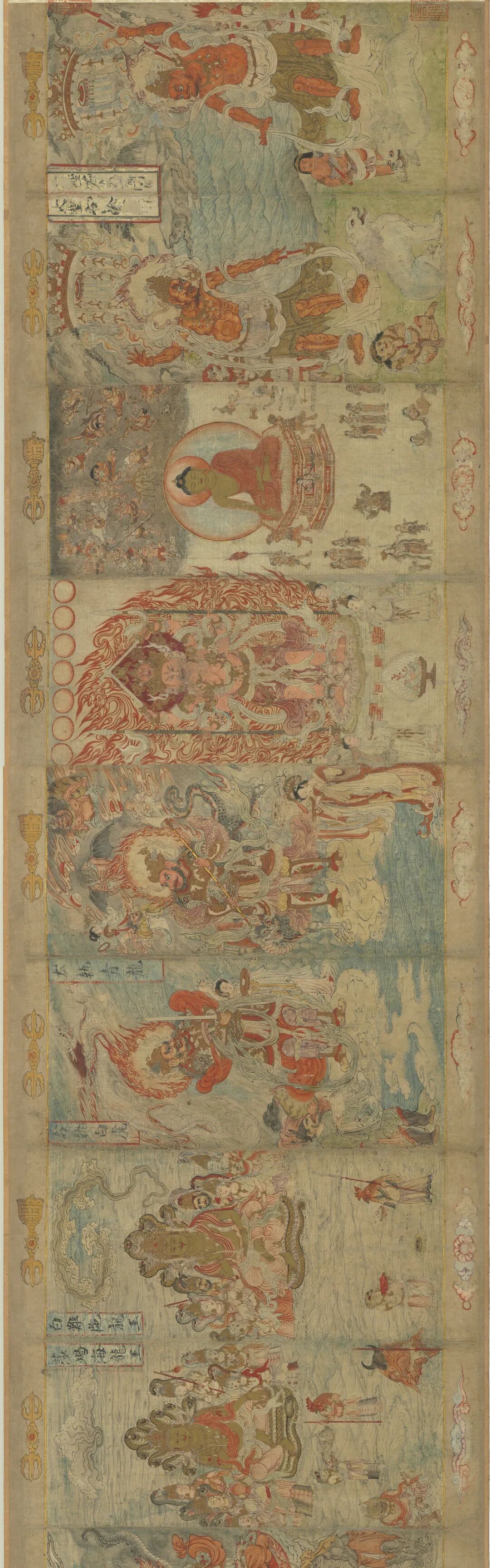 公元1180年2月,《梵像卷》绘成。至迟在1378年夏秋,《梵像卷》已由南京天界寺(今朝天宫东侧丰富巷)德泰和尚购得,我们因此推测《梵像卷》在元朝就已离开云南。