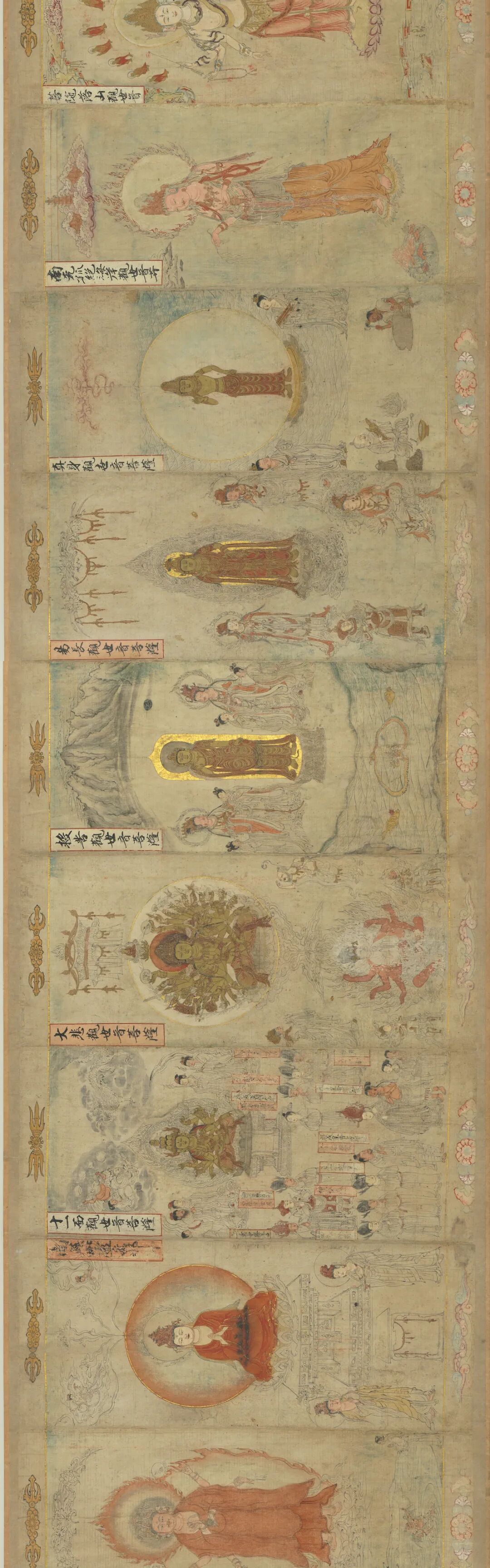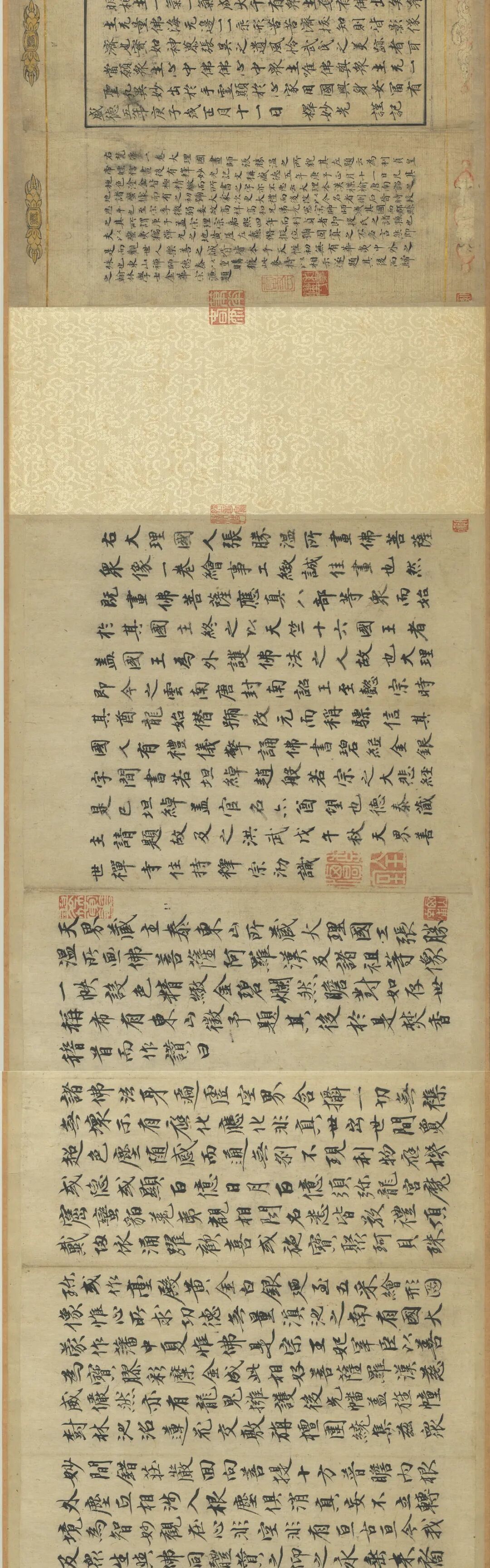 回想起三十年前初次看到《梵像卷》影印照片,惊奇于许多世纪前,云南竟有人创作出如此之长的纸本绘画——第一印象就是长、很长,十六点三五米在中国古代画卷中算得上罕见。