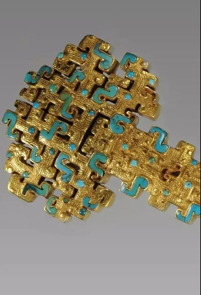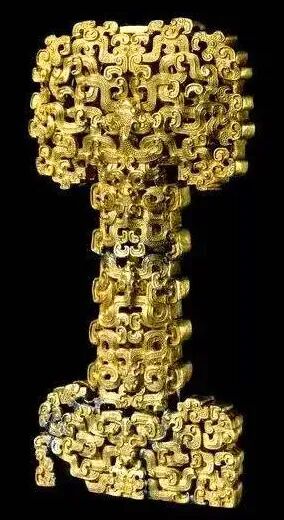 许多人第一次看到此金柄铁剑都被其华丽的剑柄所吸引。在大英博物馆还保存着另一件同源神器——春秋透雕蟠龙纹金剑柄。格、柄、首合铸,整器蟠螭交错,铸工繁縟精细极其华丽,与这件有“秦剑之星”之称的金柄铁剑风格一致,应属春秋中晚期秦地高等级贵族佩挂之器。