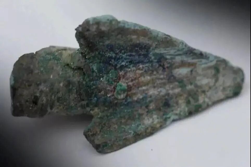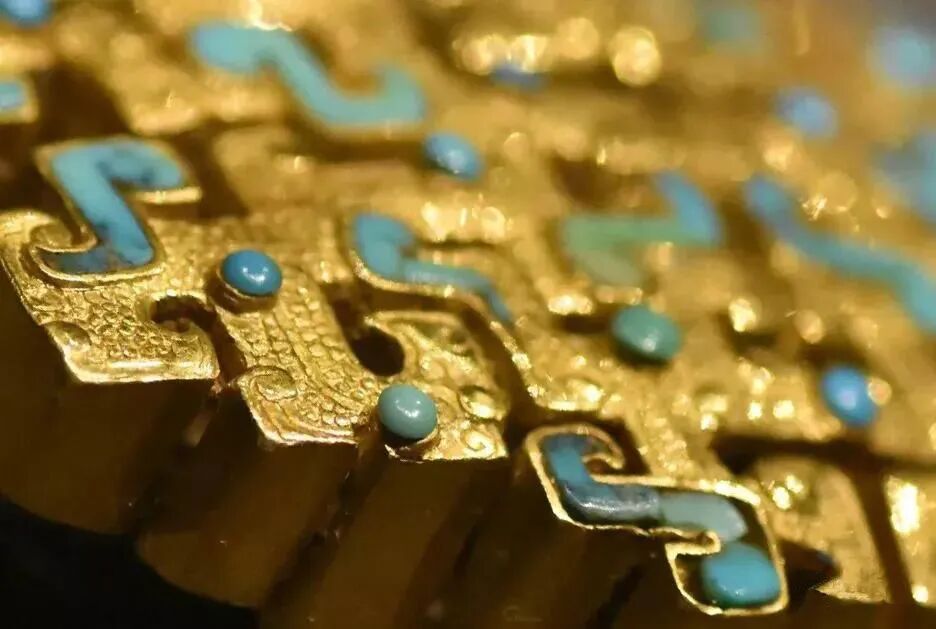 更有意思的是,金柄铁剑所镶嵌的宝石为绿松石,考古人员在显微镜下观察可以看到,绿松石的加工制作过程曾使用了青铜工具进行表面打磨处理,这说明我国至少在春秋时期已经开始使用青铜打磨工具。
