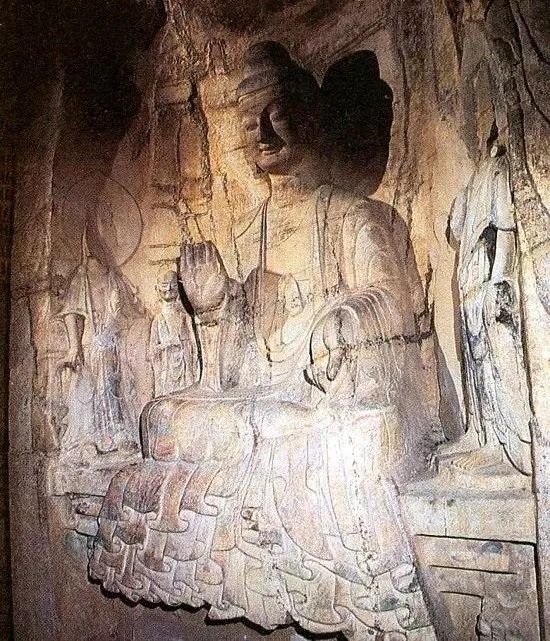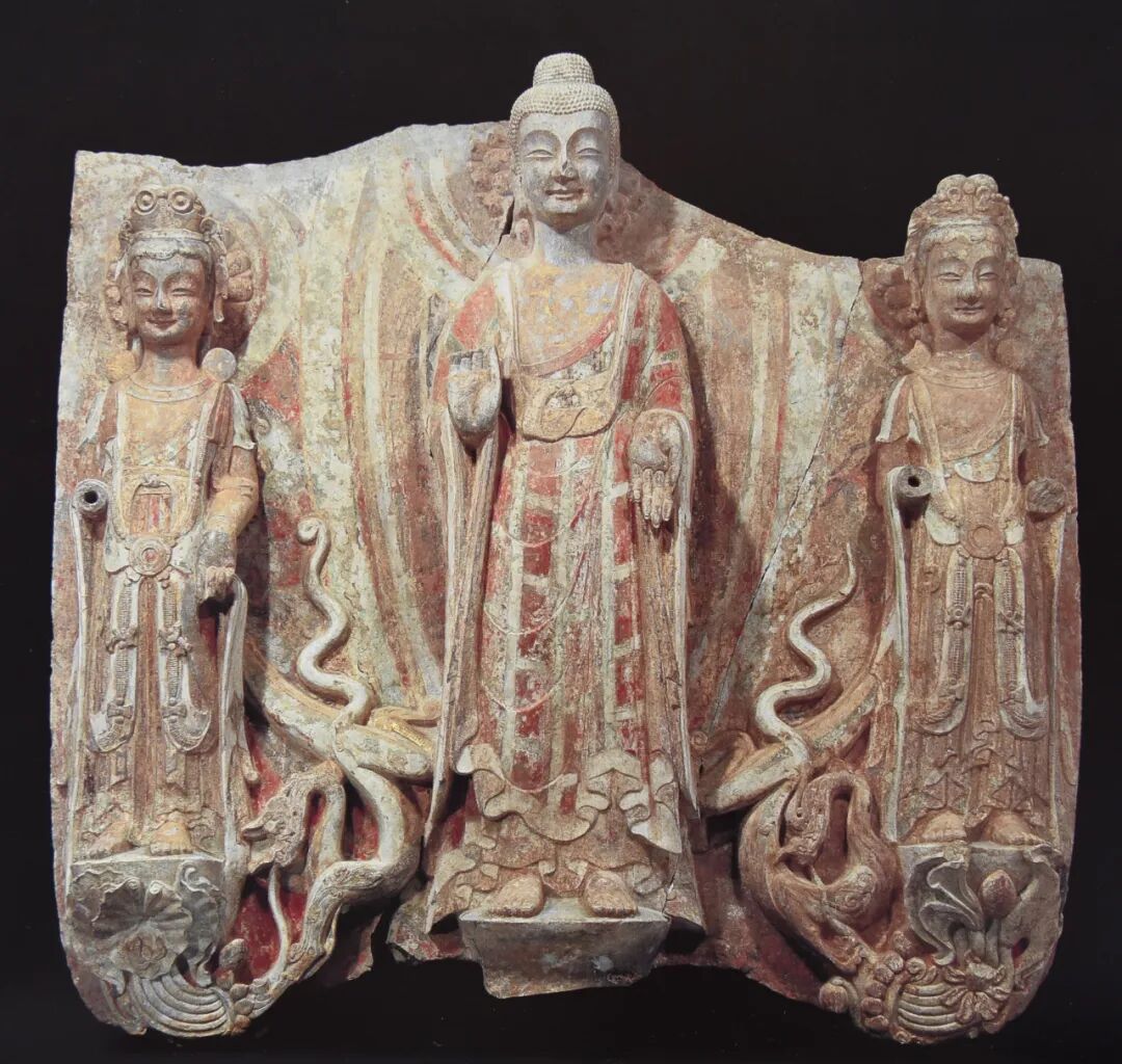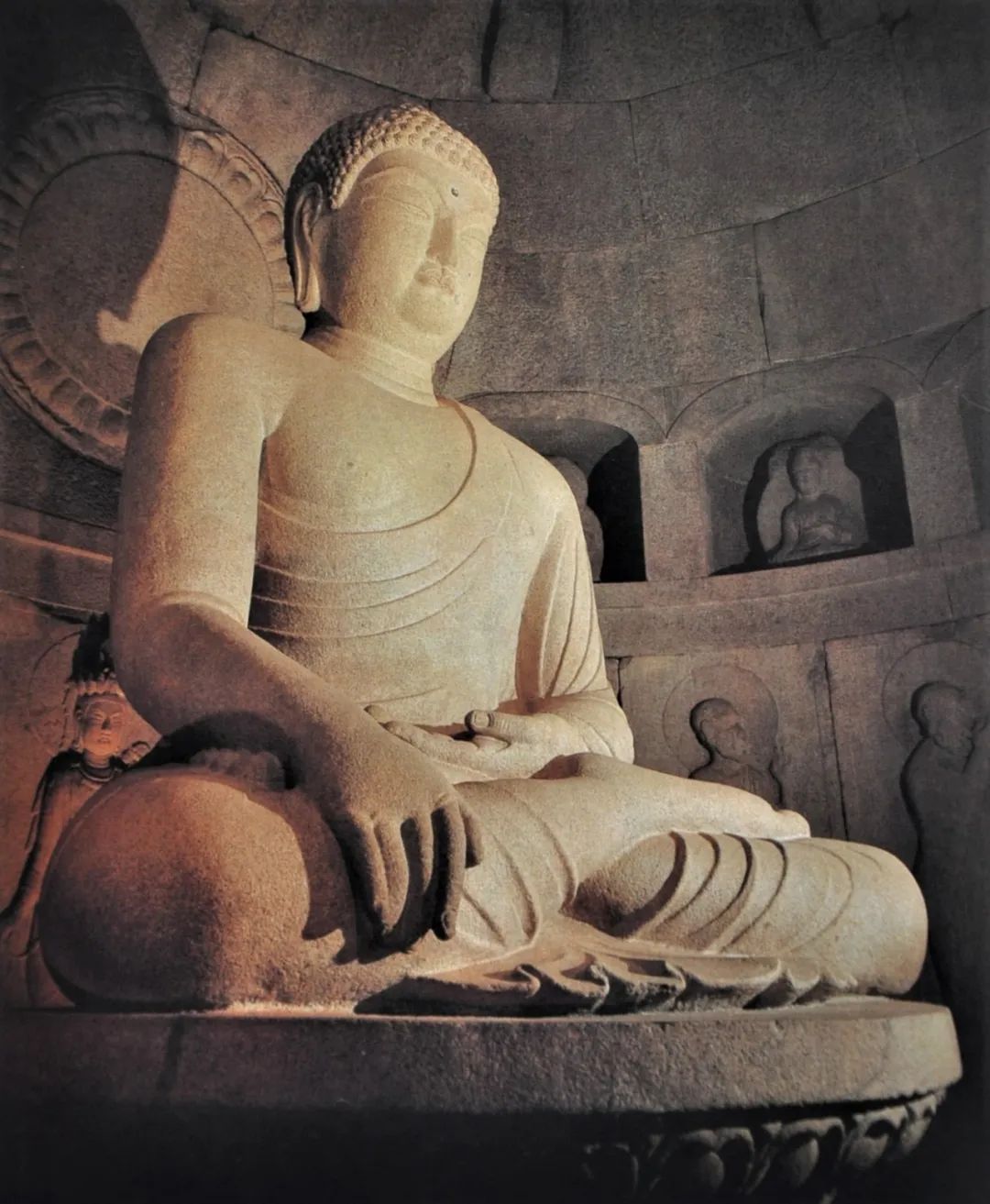 高326公分 庆尚北道月城石窟庵佛三尊造像 东魏 贴金彩绘 石雕