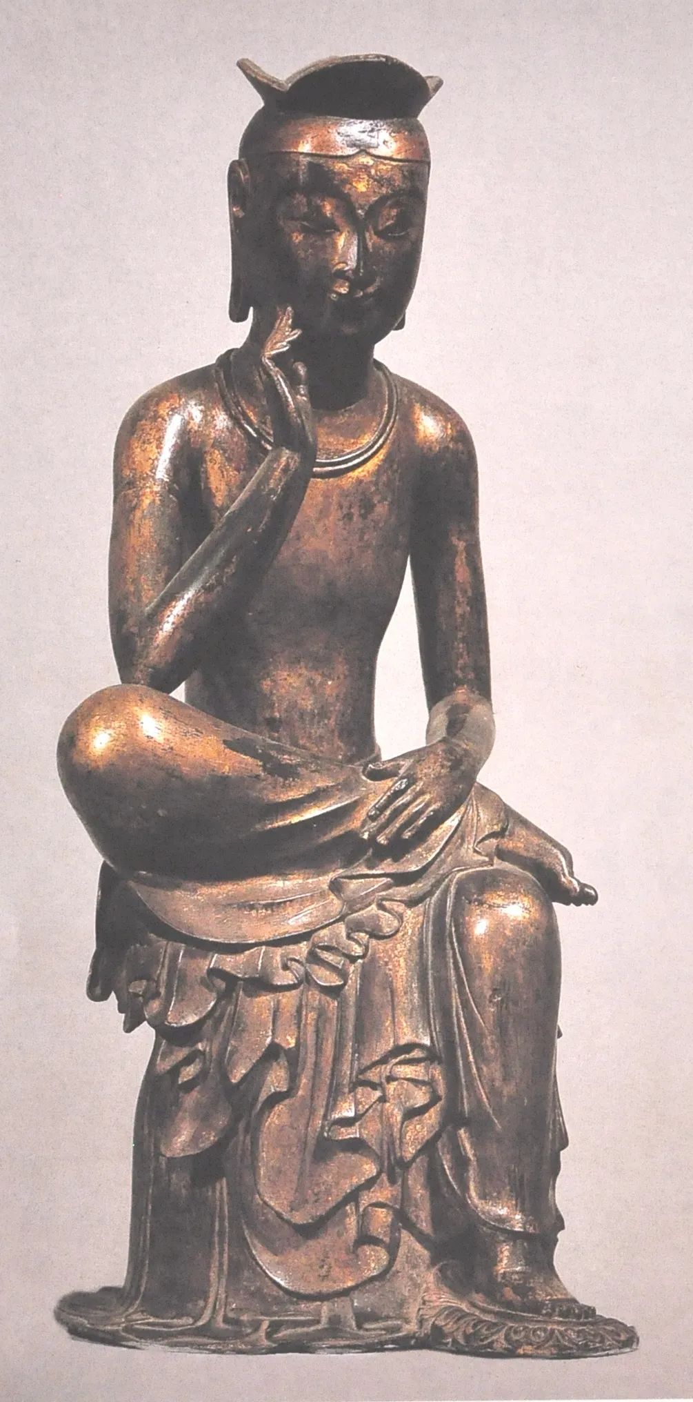 高84.2公分 日本京都广隆寺半跏思惟像 金铜 百济 高93.5公分