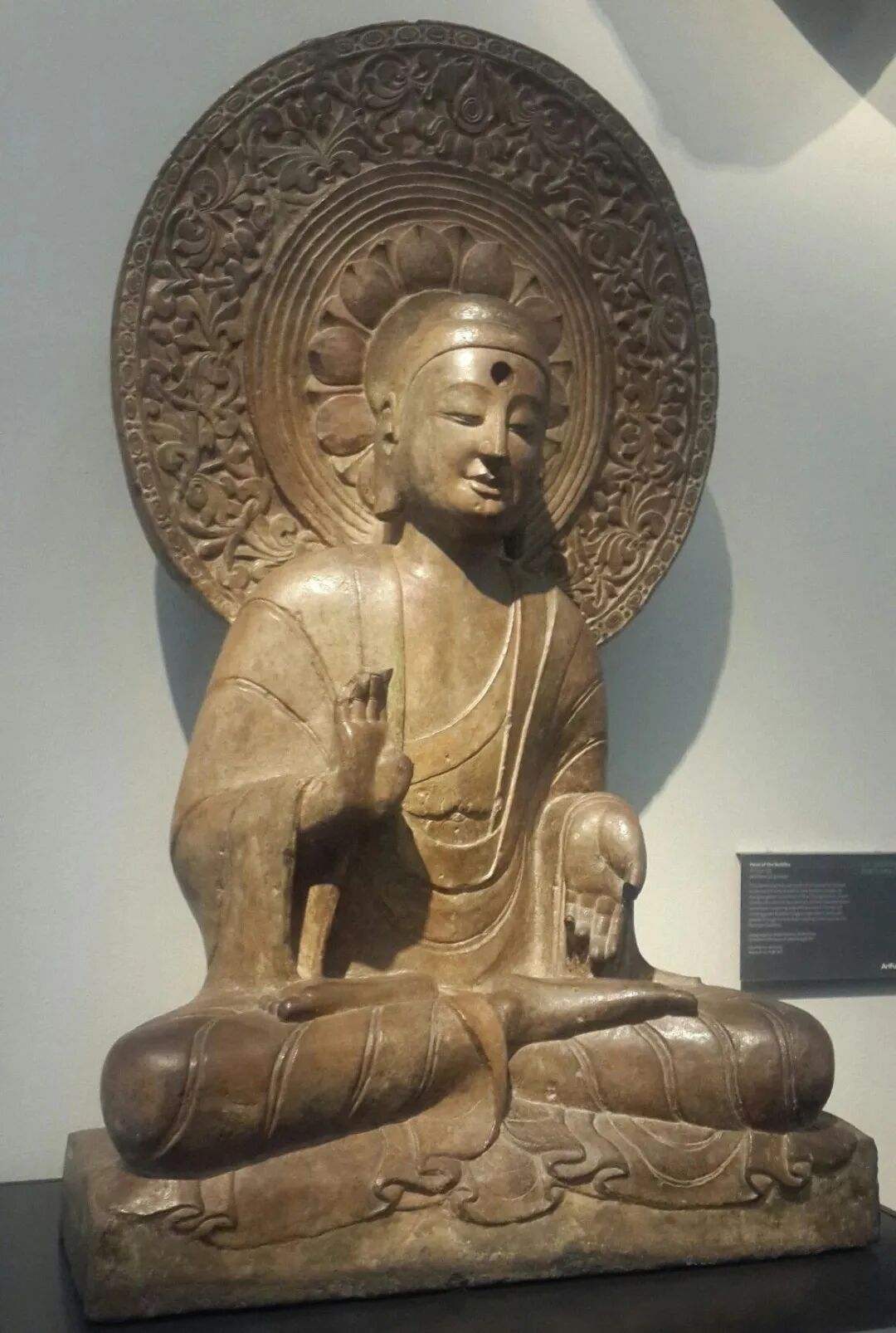 高120.5公分 青州龙兴寺出土佛坐像 北齐 大理石 高166.7公分
