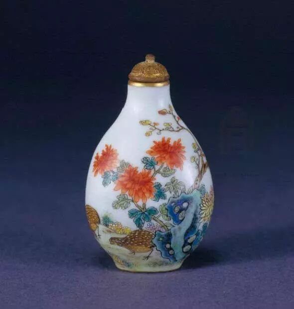 清乾隆 粉彩菊花鹌鹑图瓷鼻烟壶
