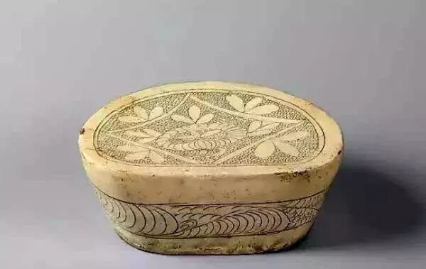宋代 白釉珍珠地刻劃花菊花纹腰圆枕