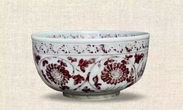 明洪武 釉里红缠枝牡丹菊纹大碗