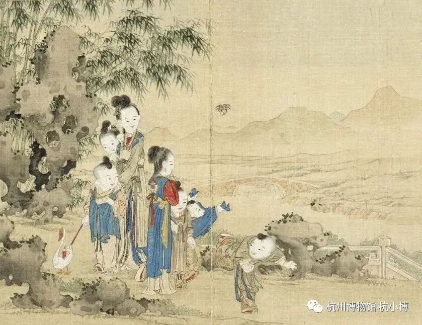 “踢碎香风抛玉燕,踏残花月上琼瑶。”这句诗词生动形象地描绘了踢毽的场景。毽球俗称毽子,古称“燕子”,又称“抛足戏具”。[1]《燕京岁时记》中描述毽子:“毽儿者,垫以皮钱,衬以铜钱,束以雕翎,缚以皮带。”[2]毽子分毽铊和毽羽两部分,毽铊多用圆形的铅、锡、铁片或铜钱制成,毽羽多用翎毛。因简易便携,老少皆宜,踢毽子成为冬季备受欢迎的休闲健身运动之一。在杭州博物馆馆藏书画中,就藏有一件清代吕焕成作冬日踢毽图,其描绘的正是冬日踢毽之景。