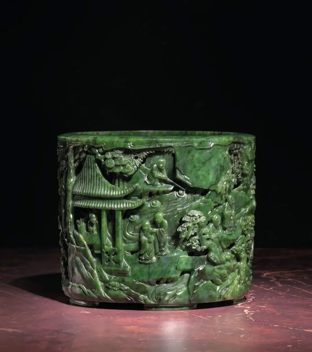 清乾隆碧玉镂雕竹林七贤图笔筒