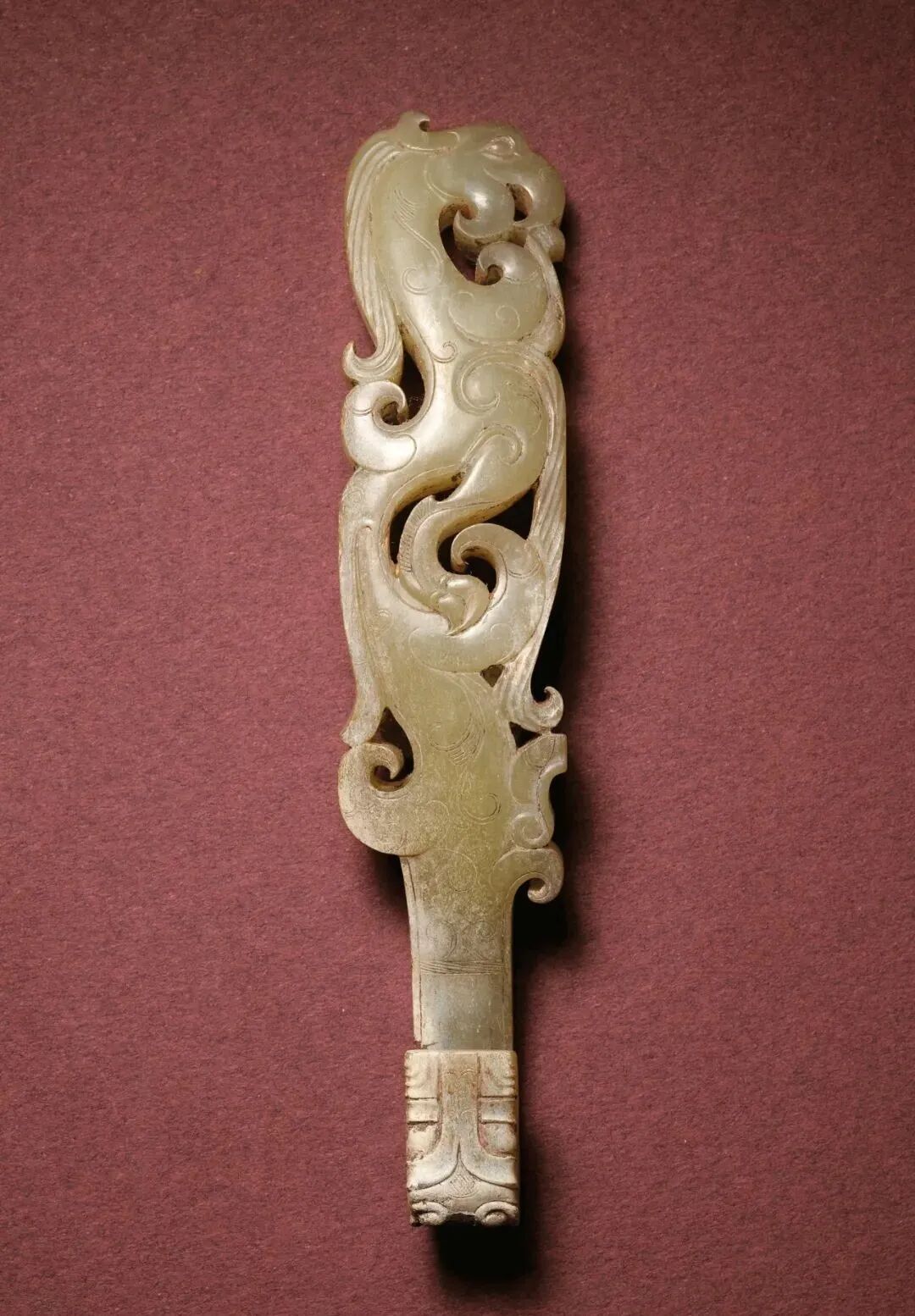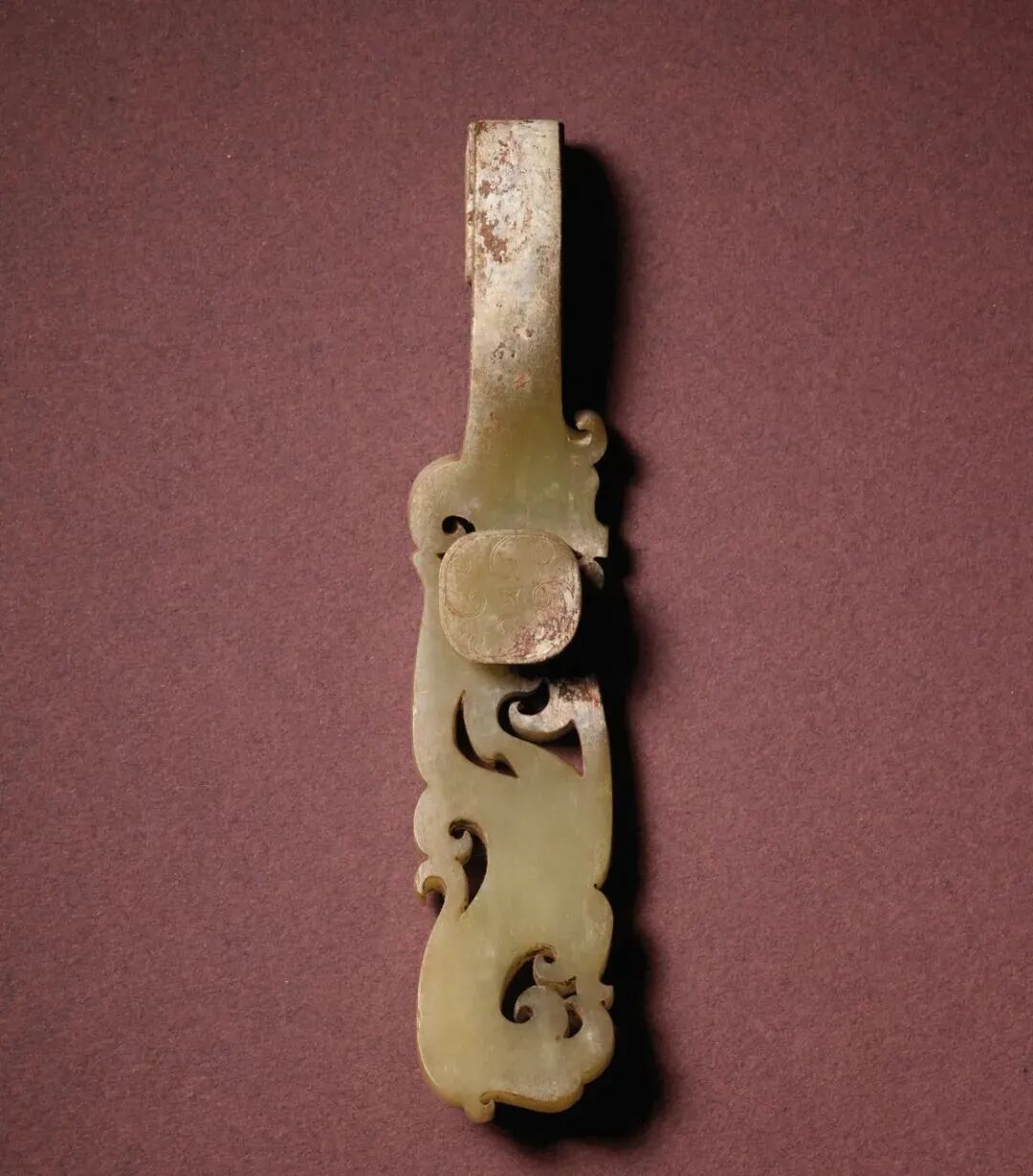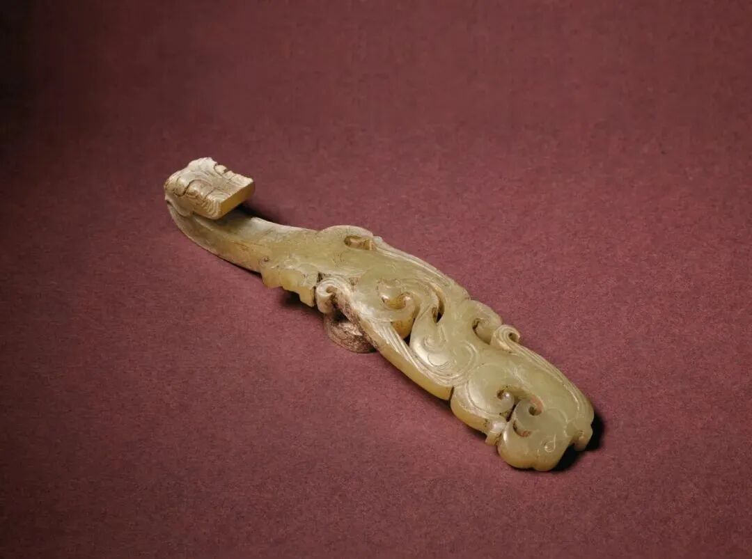 洛阳金村战国中晚期墓、安徽长丰战国晚期墓的玉器,以及广州南越王墓的西汉早期玉器,都见镂雕凤鸟纹,但鲜有如此件玉带钩上的凤鸟纹如此端庄秀丽,生动自然。