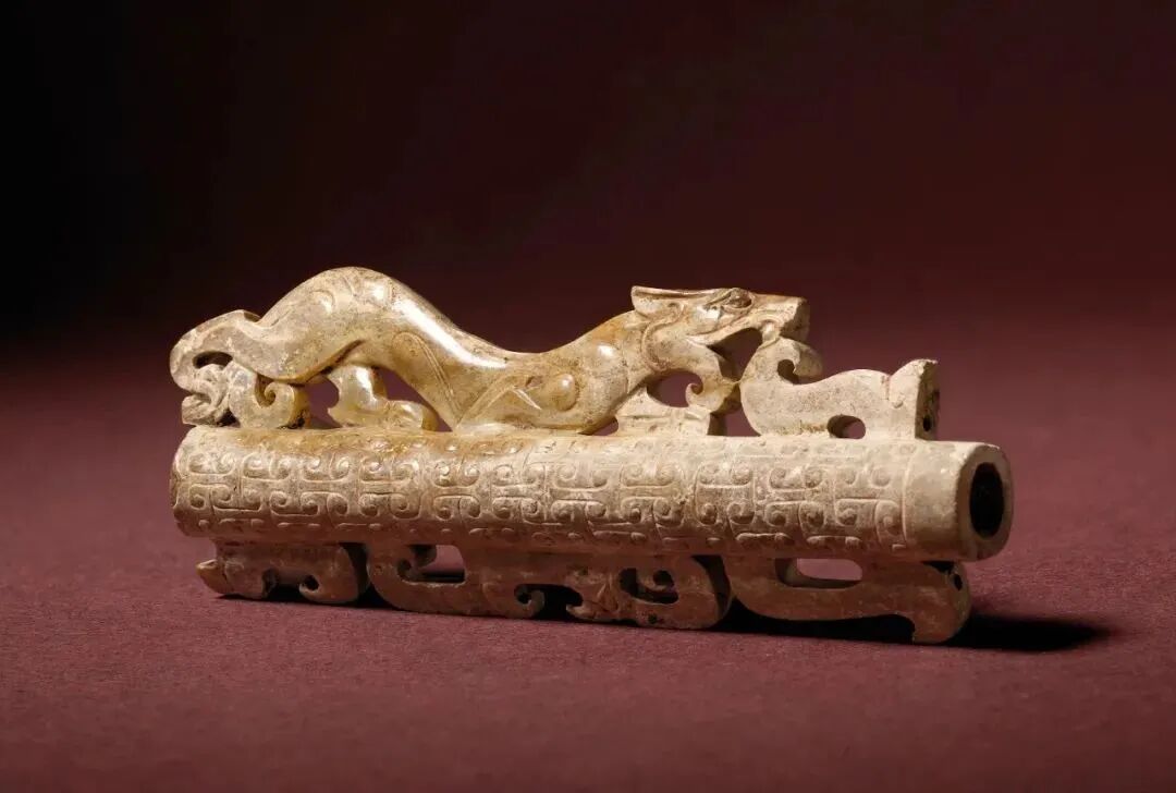 此类管形饰亦见凤纹,如安徽省长丰县杨公2号墓例子,见古方着《中国古玉器图典》,北京,2017年,206页,左上。