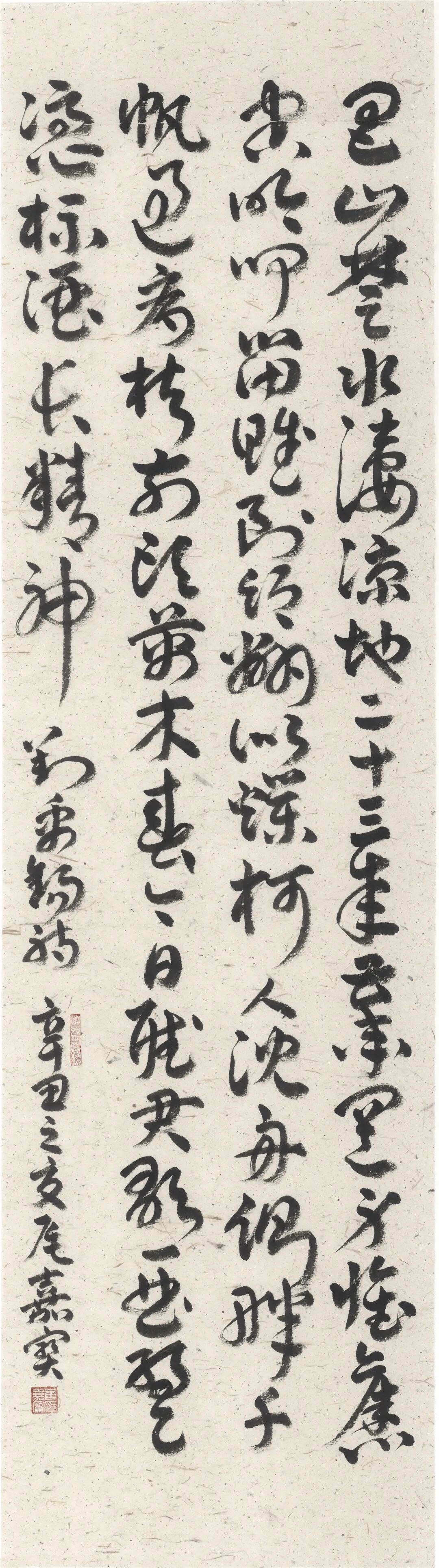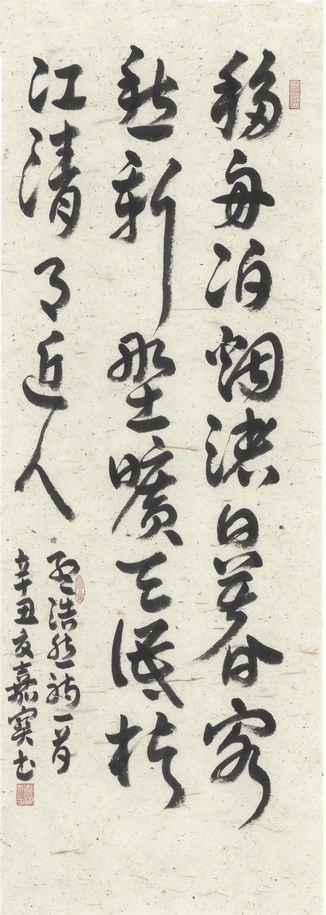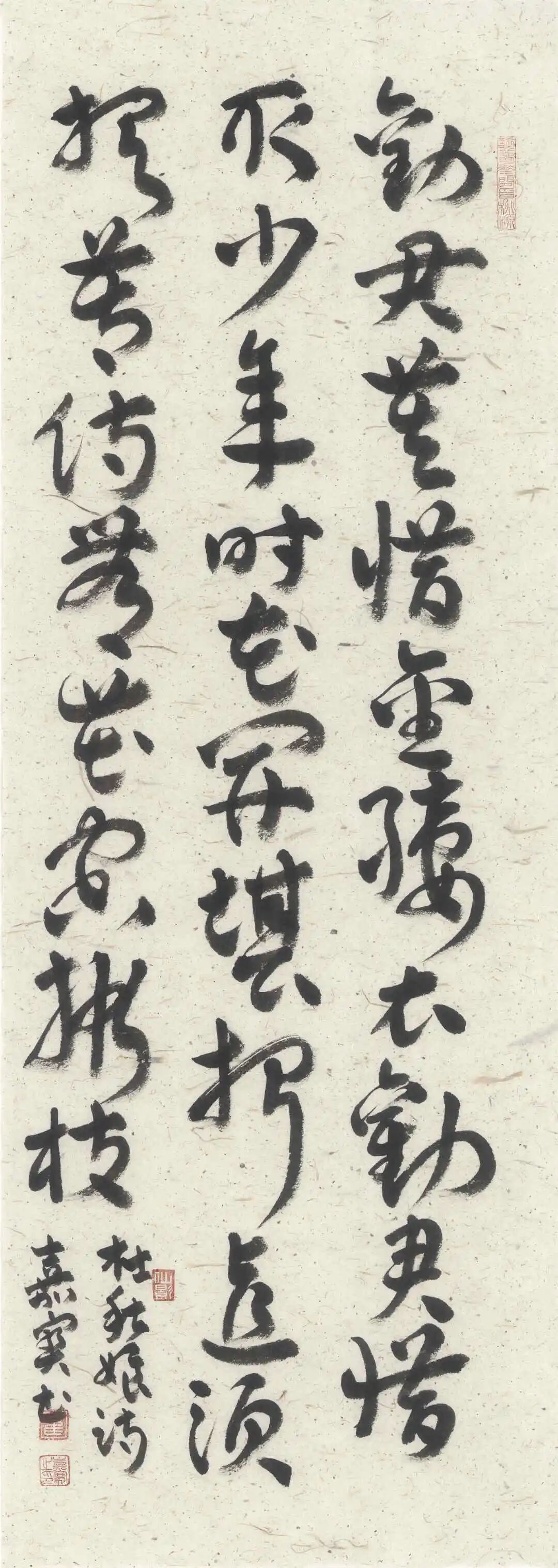 作为一种高度的灵智活动的书法创作,在崔嘉宝女史那里,已然生发为一种深邃的人文意境,这是一种源发于生命深处的大观照大拥有,是一次远超物质主义之上的精神的飞翔。每观她笔下那些灵奇的线条、狼籍的点画,总使我心醉不已;我甚至难以置信,这一切竟出自一位90后的女书家之手!
