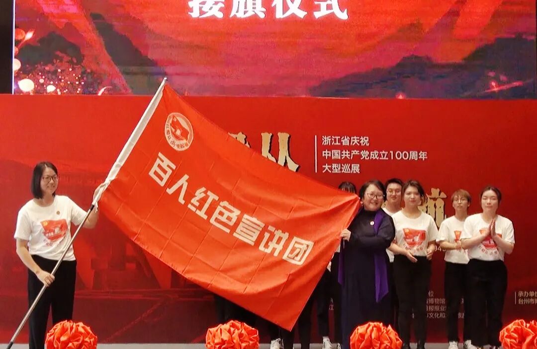 开幕式中,浙江省博物馆副馆长蔡琴将“百人红色宣讲团”旗帜交于台州博物馆分团,将红色的火种撒向台州。现场还对巡展期间的涌现出的工作扎实、甘于奉献、表现突出的单位和个人进行了集中表彰。