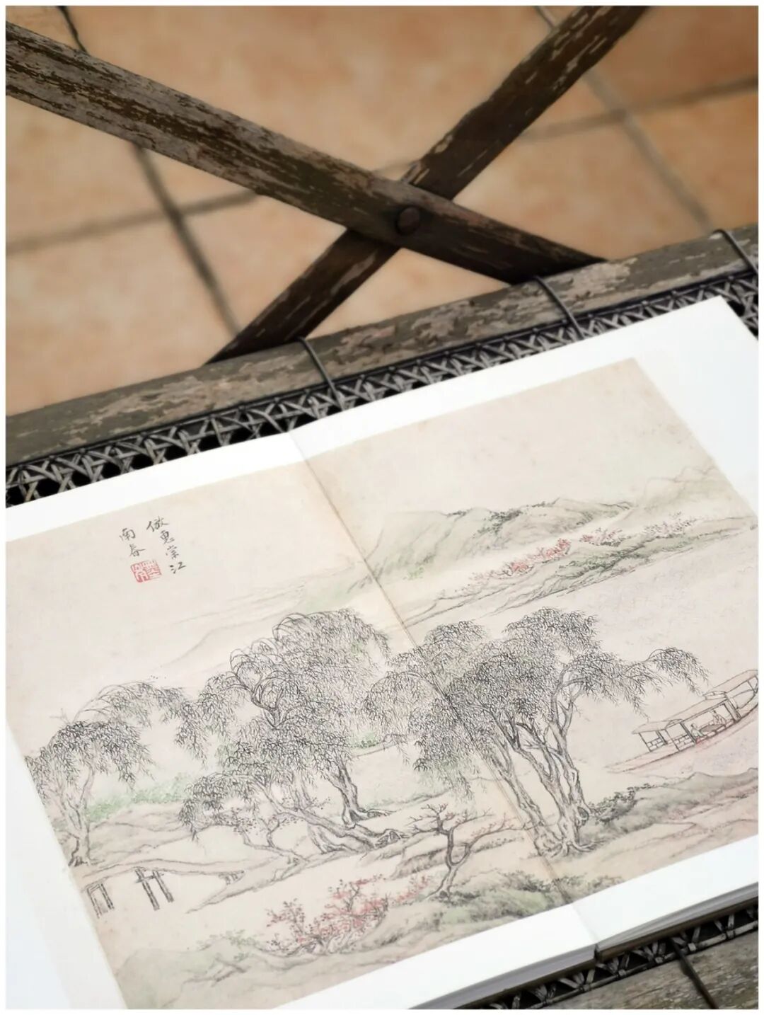 陆飞(1719—?)字起潜,号筱饮。浙江仁和(今杭州)人。清乾隆三十年(一七六五)乡试解元。性高旷,慕张志和之为人,造舟日“自度航”,妻孥茶灶,悉载其中,遨游西湖上,渔夫樵子呼为“陆高士”。工诗,书法飘逸,擅画山水、人物、花卉,俱超隽逸群,亦善墨竹,绝似吴镇。晚年鬻画自给,有印日“卖画买山”。着有《筱饮斋稿》。此陆飞山水花鸟册,共十开,现藏于荣宝斋。