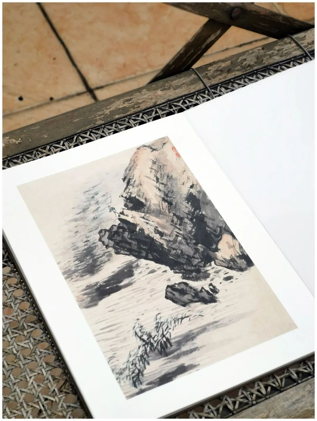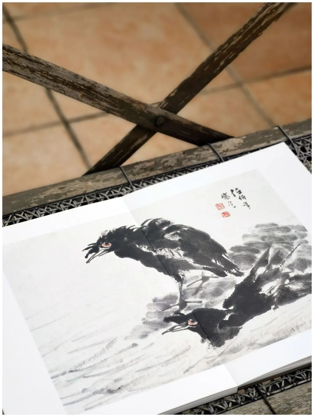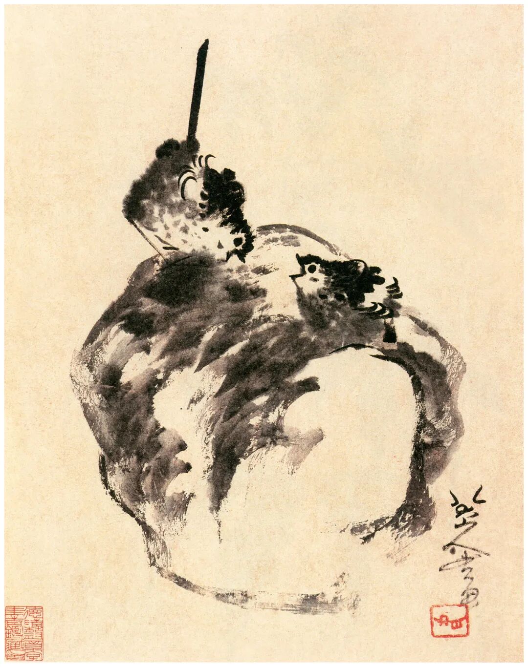 朱耷(1626—1705)传自幼耳大,故名耷,字雪个,号个山,更号人屋、驴汉,晚号八大山人,别署驴屋驴、个山驴、何园等。江西南昌人。明宗室,宁献王朱权九世孙。天性聪颖,八岁能诗。明末为诸生,明亡弃家避居奉新山中。清顺治五年(1648)剃发为僧,法名传繁,号刃庵。后病癫狂,哭笑无常,佯狂行走市肆间。康熙二十年(1681)居南昌,病愈还俗。一说曾为道士、南昌青云谱尊为开山祖师。生平不与清廷合作,常署花押由“三月十九”(崇祯帝自缢日)四字组成,以寄亡国之恨。所暑八大山人,联缀似“哭之”或“笑之”。所画鱼鸟,眼珠向上,所谓“白眼看青天”,寓其不平之气。工书法,行楷学王之,参以董其昌,纯朴圆润,无明人习气。狂草亦怪伟,自成一家。尤擅绘画,专工写意水墨。山水学黄公望,构图受董其昌影响,但用笔干枯,呈荒凉气象。水墨花鸟取法沈周、陈道复、徐谓,笔简形赅,放逸不群。晚年造型极富夸张,具有高度概括能力、能以极少笔墨表现极复杂事物。意境高远,空前绝后,于清代花鸟画影响极大。与原济、髡残、渐江合称清初四僧。能诗文,题画语多隐晦。亦工篆刻,所用印恣肆古拙,与画风一致、当出己手。此八大山人花鸟册共十一开(含自题一开、黄宾虹、王福庵各一开),现藏于荣宝斋。