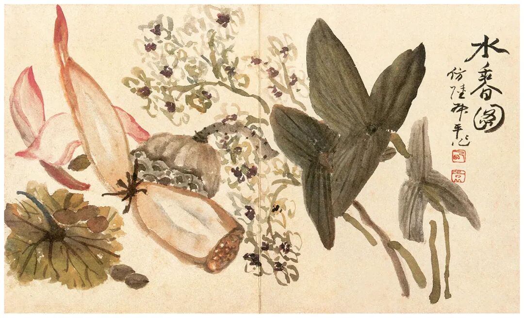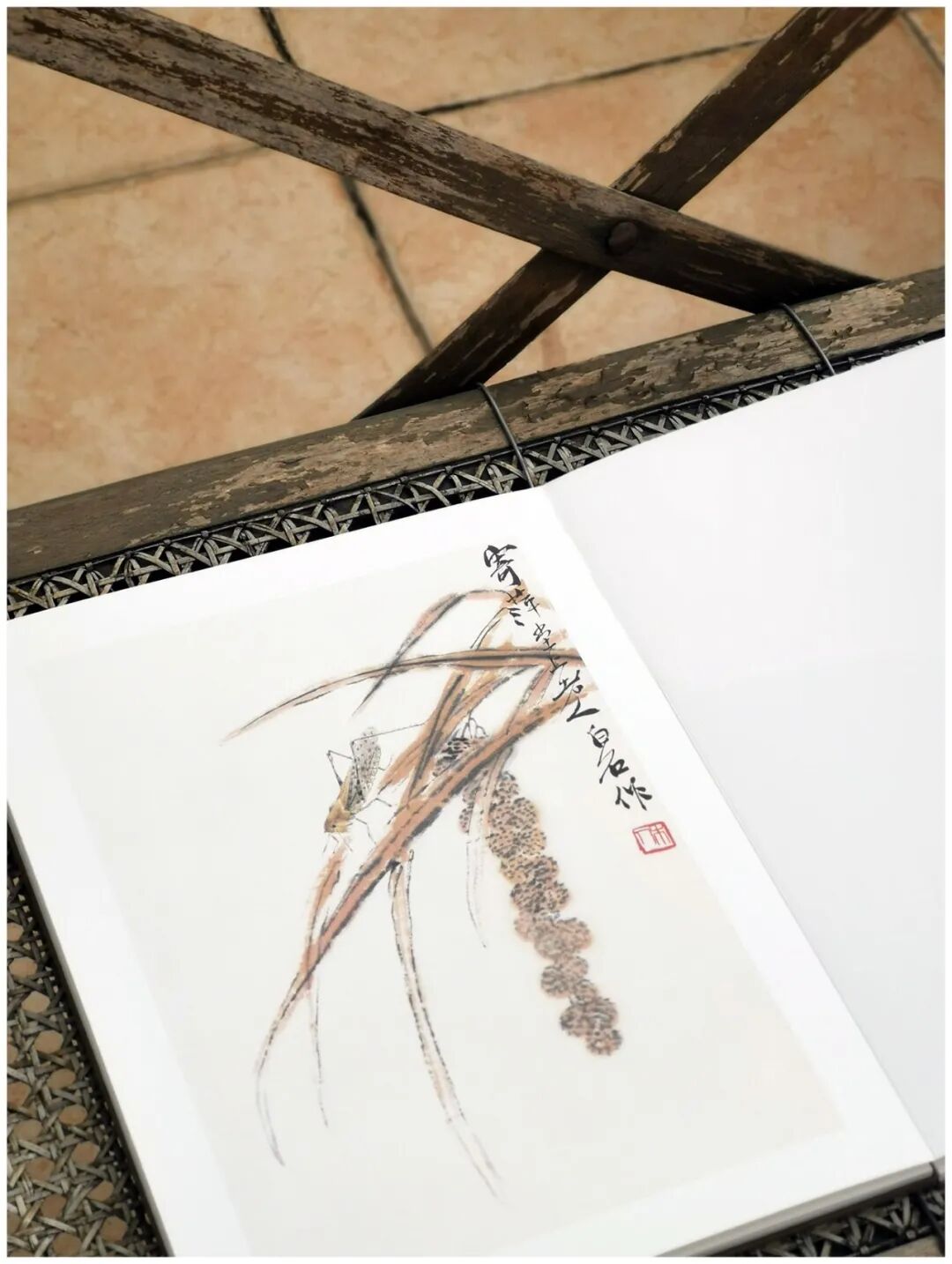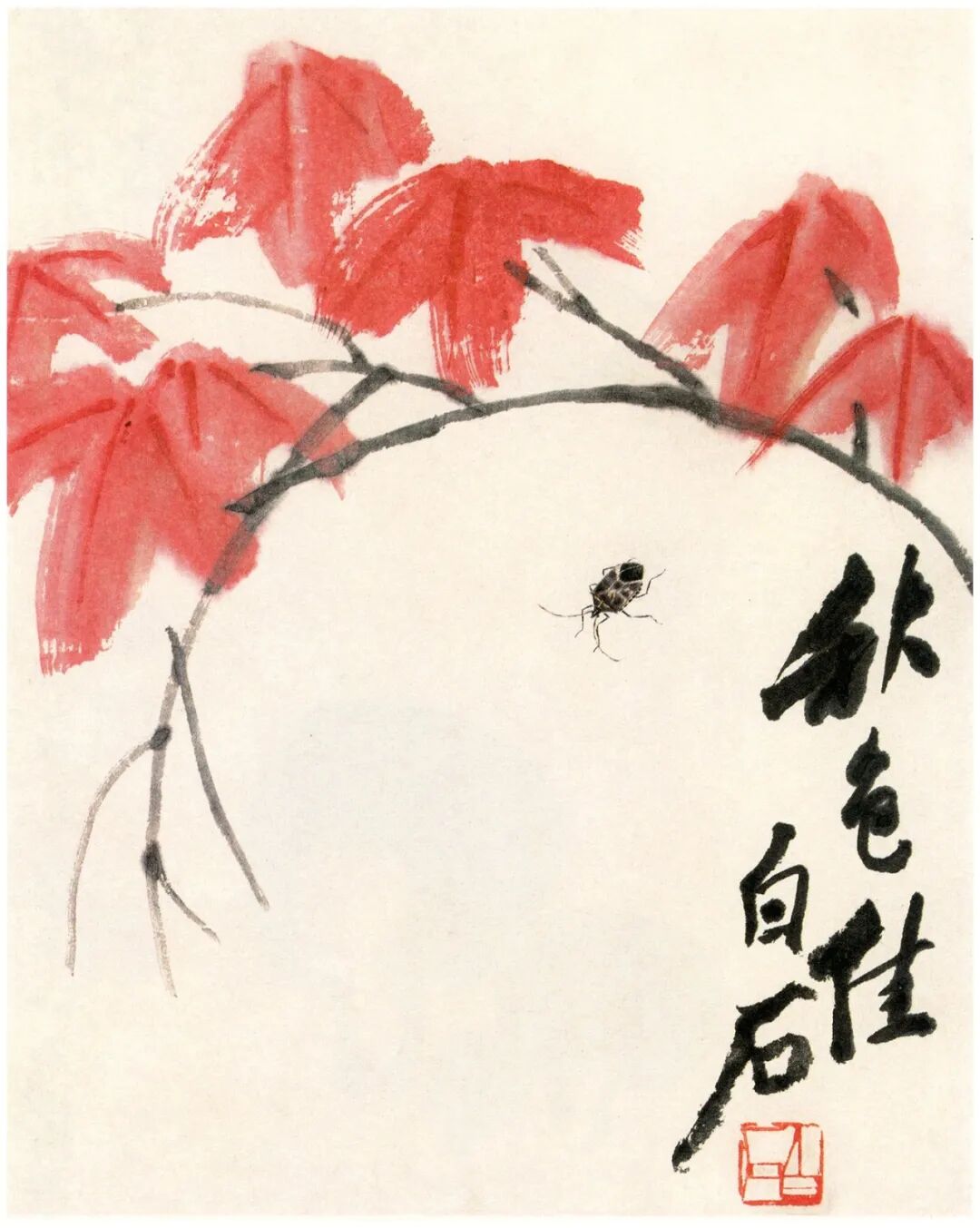 齐白石(1863—1957)湖南湘潭人。原名纯芝,字渭清;后更名璜,字濒生,号白石,别号借山吟馆主者、寄萍老人等。早年曾做雕花木匠,后从陈少蕃、胡沁园学习诗文、篆刻、书法、绘画,遂以卖画、刻印为生。中年曾多次游历祖国大好河山。诗宗王闿运、樊增祥,有古民歌意趣。治印取法秦权、汉印、汉碑额,单刀直下,豪快有力。书学何子贞、金冬心、李北海、《天发神谶》《三公山》,晚年参以《曹子建碑》,其绘画在陈师曾支持下进行“衰年变法”,此变法得以在博大与精微之间游刃,创作出不少“千古绝唱”的“好文章”。此齐白石虫草册共二十开,现藏于荣宝斋。