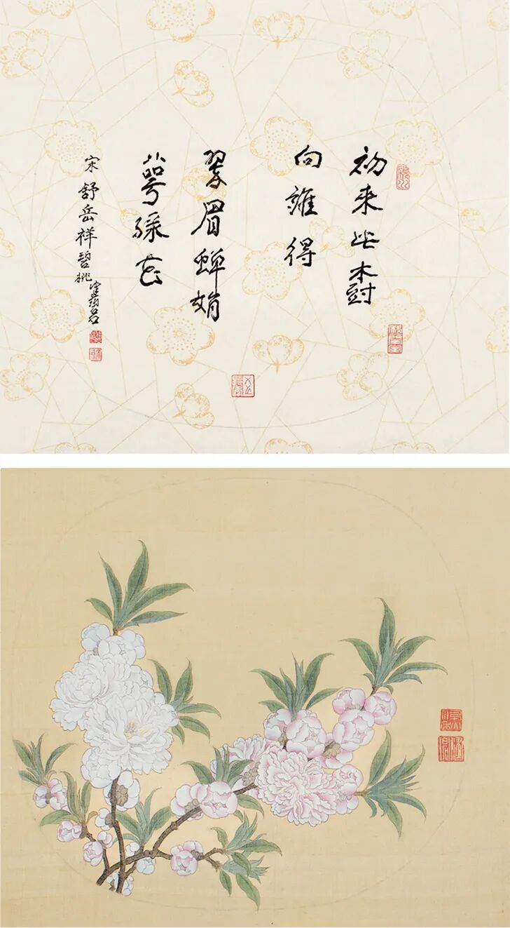册页中无论是对碧桃、粉桃不同色调的烘染,抑或是工笔水墨的晕染,均托自宋人纨扇,颇见功底。要知,工笔画之难即难在多次晕染后易显匠气,而这套册页非常完美地处理好了层层晕染与立体感之间的关系,写实生动,色调雅致,给人以清醇平和之感,没有一丝火气、燥气、媚气、俗气。