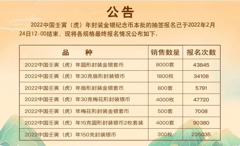 虎年金银纪念币,抽签报名已经结束!你报名了吗?