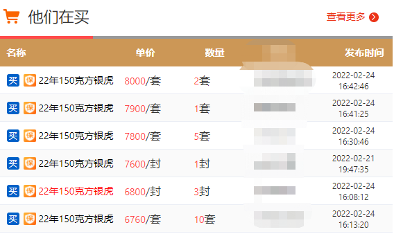 其中最抢手的必须是150g方银虎!共有235035人参与报名,只有300人能中签,中签率只有不到0.13%!
