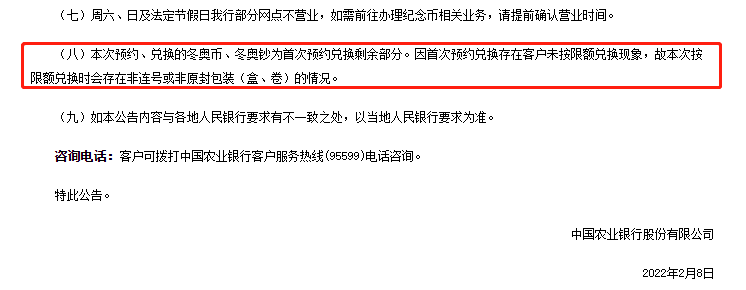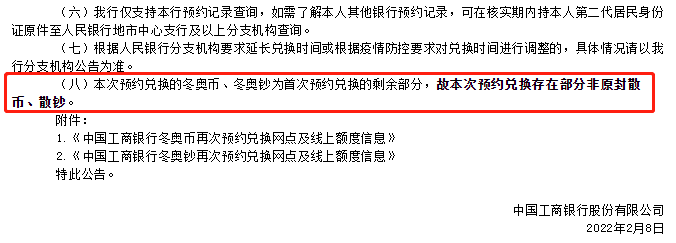 另外受到疫情影响,天津、深圳、广西百色、江苏苏州、黑龙江的黑河市爱辉区、牡丹江绥芬河市以及内蒙古呼和浩特、呼伦贝尔、包头、乌兰察布二次预约的冬奥币钞公告延迟兑换。