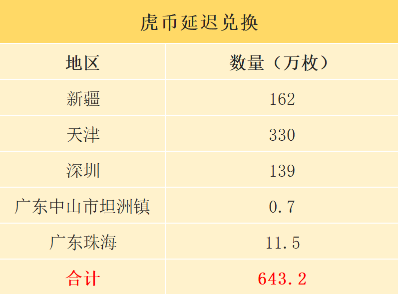 目前虎年纪念币还有新疆、天津、深圳、广东省中山市坦洲镇、广东珠海市还没有兑换。