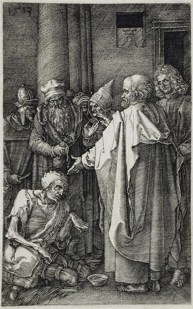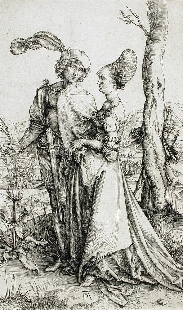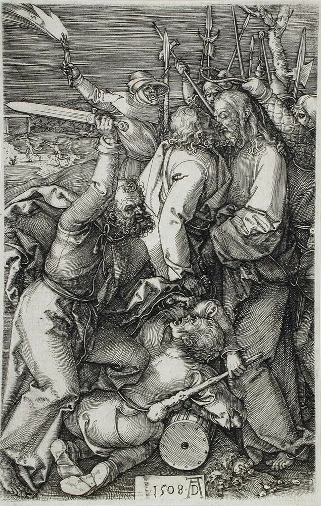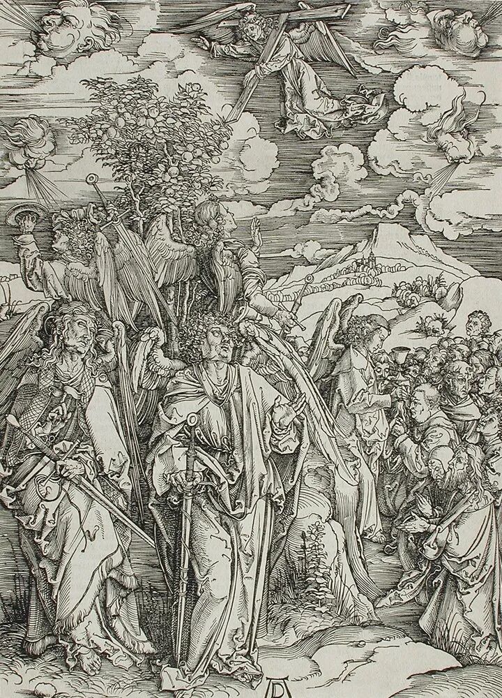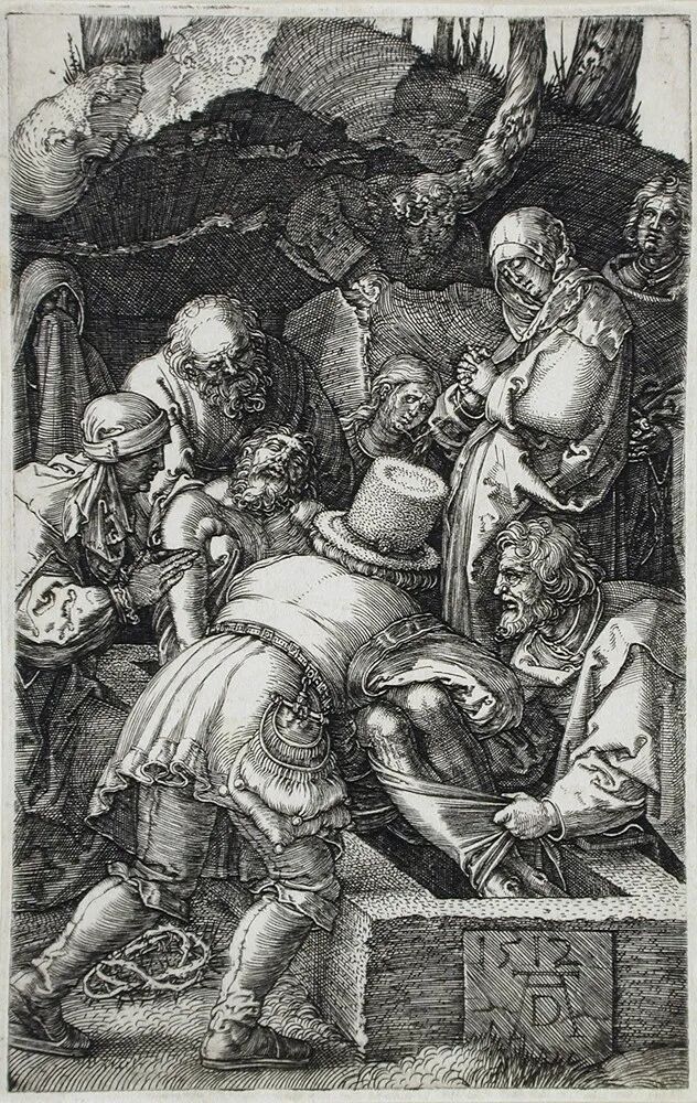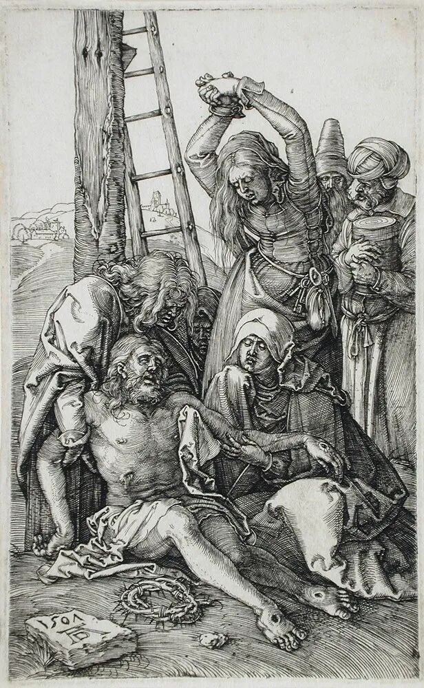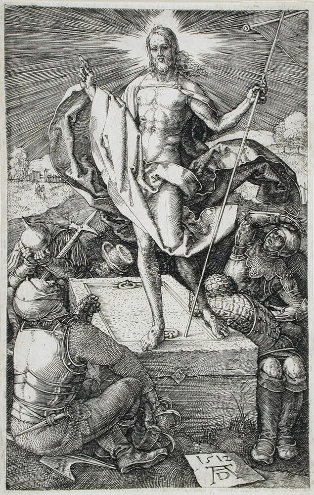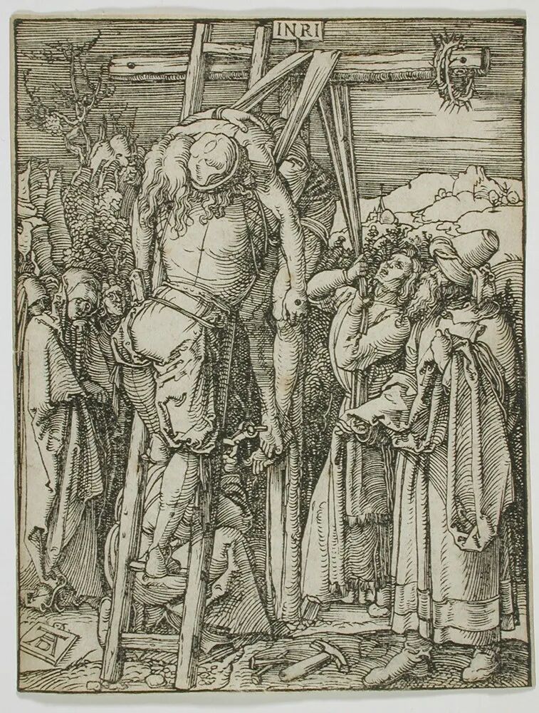 谈及丢勒的一生,在此必须要附上一段小的插曲。在德国纽伦堡陈列馆中珍藏着丢勒非常著名的一件作品,被称为《祈祷之手》,这件作品蕴含着一段颇为感人的事件。丢勒在学画之前有一位挚友名叫尼格斯坦,两人都喜爱画画,但苦于经济难题都无法拜师学习,于是两人商量其中一人工作赚钱资助另一人学画,两人互相推辞相让,最后还是商定让丢勒先去学画,尼格斯坦通过做抹桌、洗碗、劈柴等粗活赚钱。有一次,丢勒听到尼格斯坦在室内祷告,见他举着双手,泪流满面,祷告说:“亲爱的天父,求你赐福给丢勒,使他成功,将我终日所盼望的那种艺术,加倍赐给青年丢勒。阿们。”朋友真挚的爱心让丢勒异常感动,并激发起了他的艺术灵感,他自言自语说:“知道了,知道了,应该怎么办?我要以神所赐我的天才,画出这双伟大的手,使一切爱看我画的人,知道世界上竟有这种无私的爱,使他们晓得他为了我付上了何等牺牲的代价。”朋友舍己的爱心成为丢勒追求艺术的重要动力,也让他深深体验到上帝的爱是何等长阔高深,竟然可以让一个人如此地为朋友舍弃自己的利益。