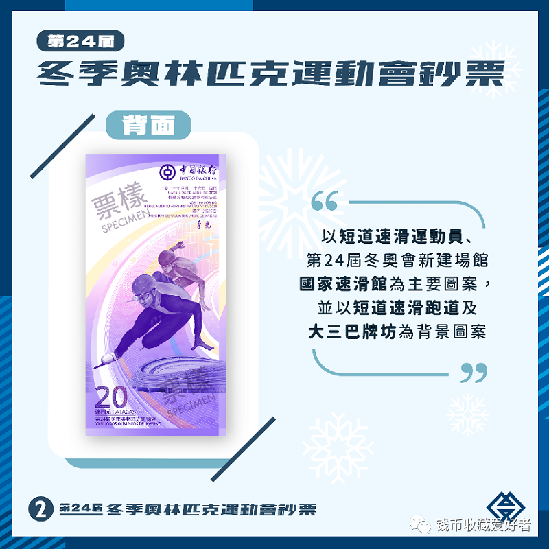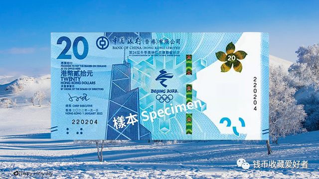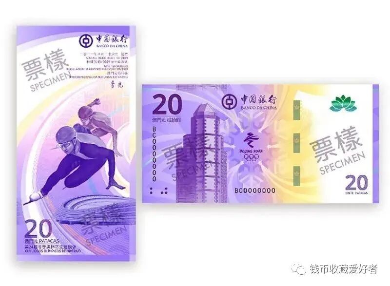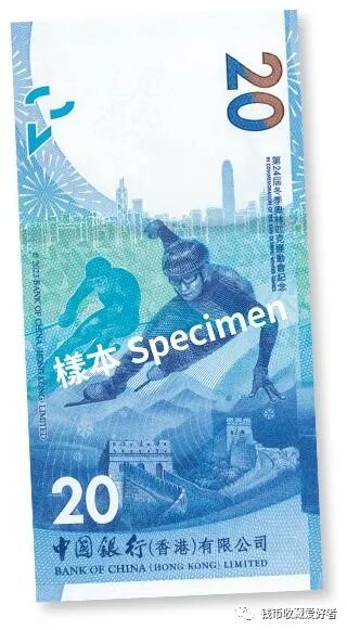 2、最被看好的澳门冬奥钞。这张纪念钞的面值是20澳门元,同样发行200万张,每位澳门居民可面值兑换2张。