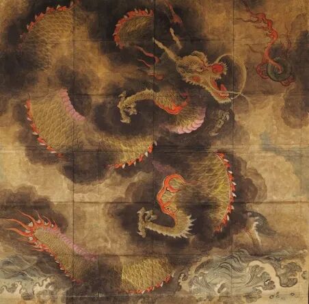 与中国一样,龙虎代表瑞兽,通常被绘成一对。韩国国立博物馆藏两幅长宽过两米的巨作,背面分别粘贴六张厚白纸形成一张底面,顶端放入粗绳卷边固定。推测是朝鲜时代正月里挂在宫廷门扉、官府大厅的挂画,用来突出虎威,镇宅避邪迎福,这也是现存朝鲜时代虎画中最大的一幅墨绘龙虎图。