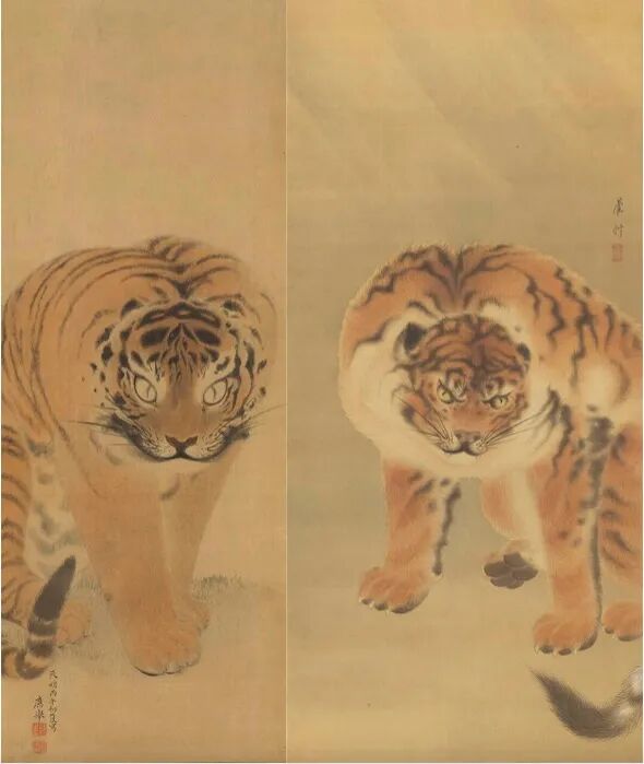 左:圆山应举,《虎图》,京都福田美术馆藏;右:长泽芦洲,《虎图》,京都福田美术馆藏