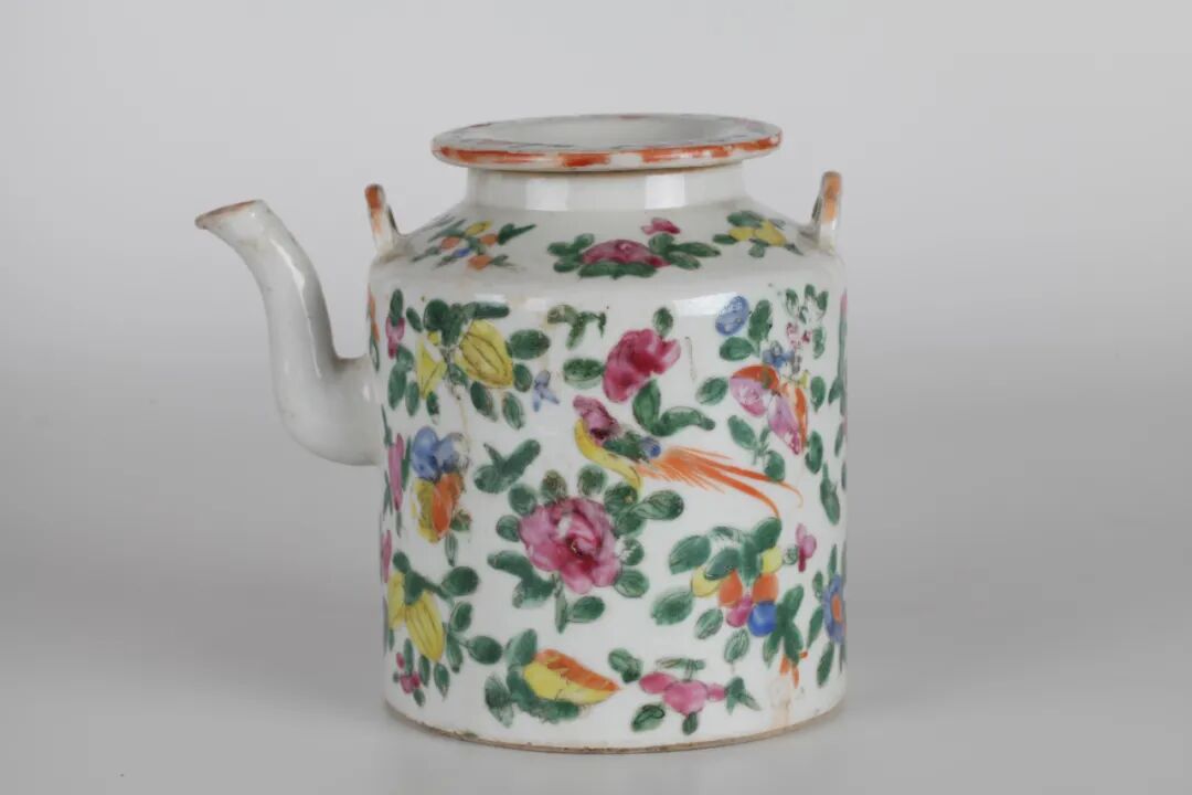粉彩花鸟茶壶