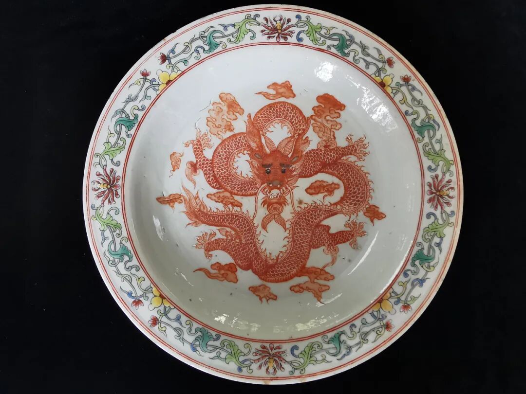 粉彩矾红龙纹盘