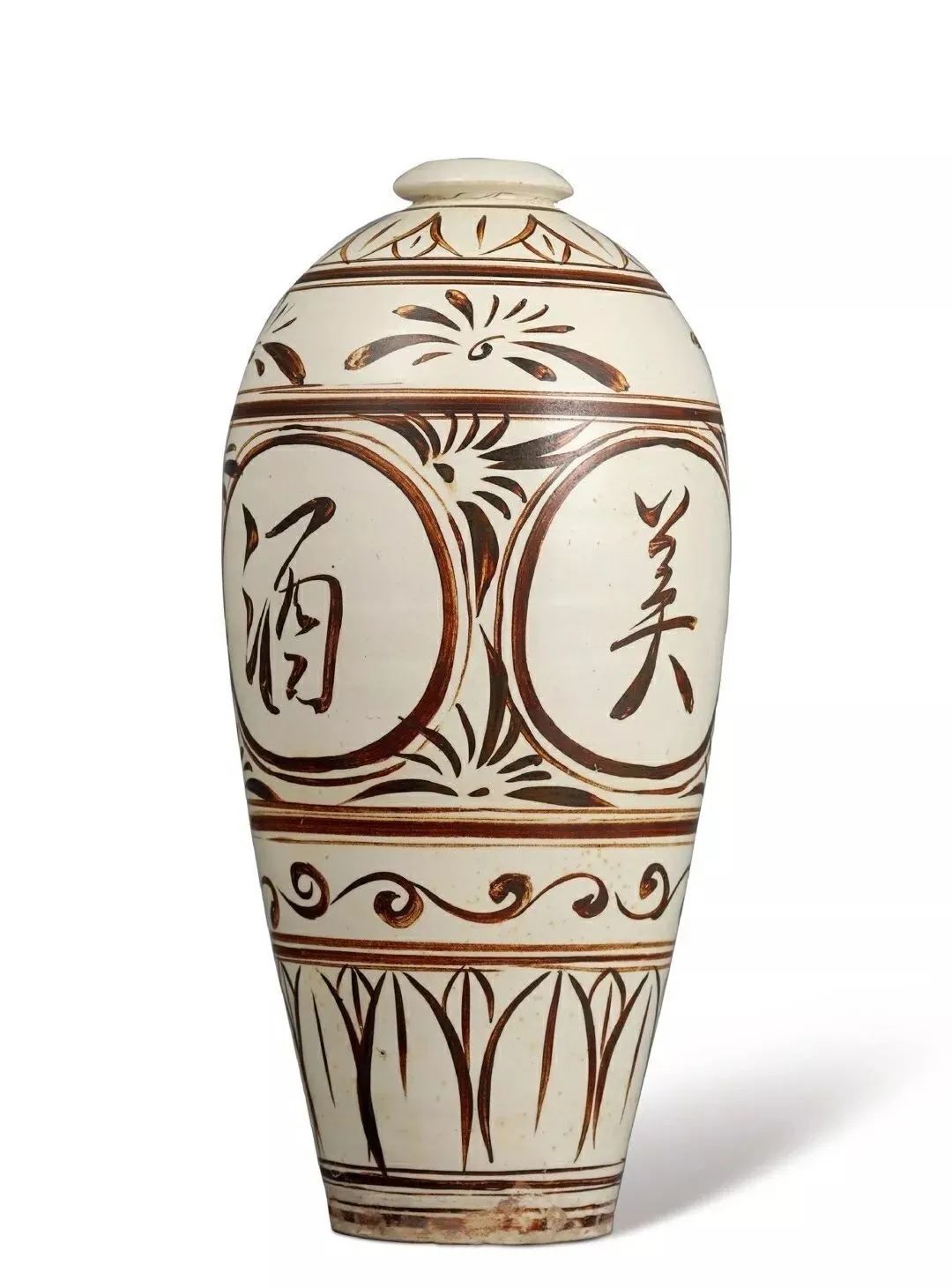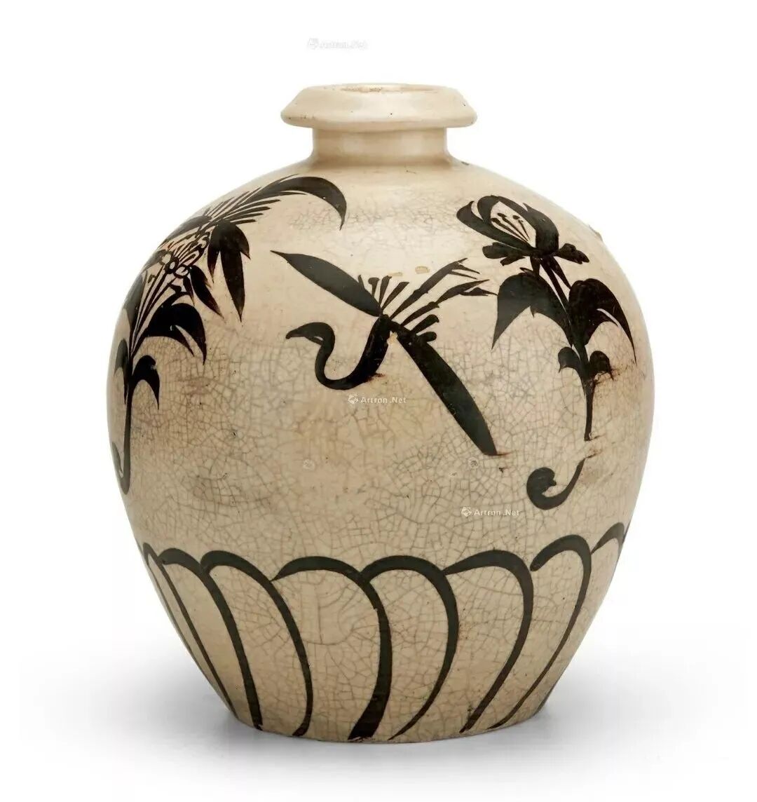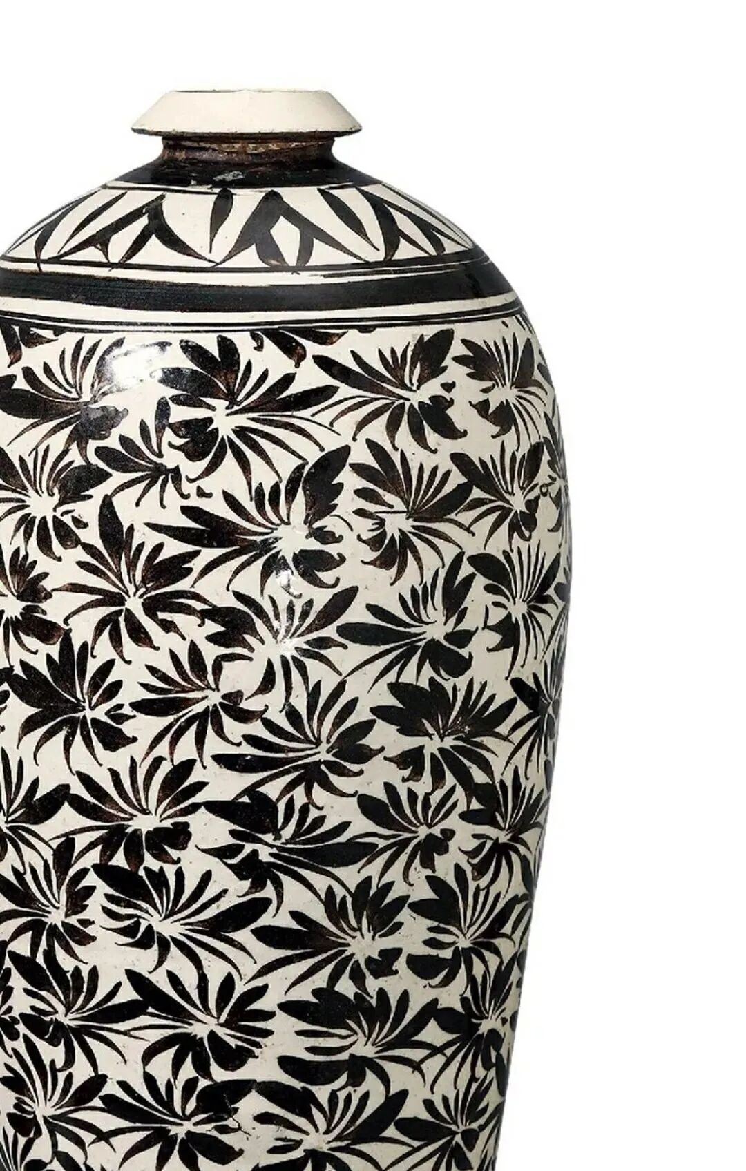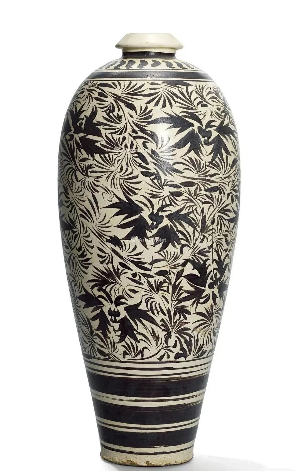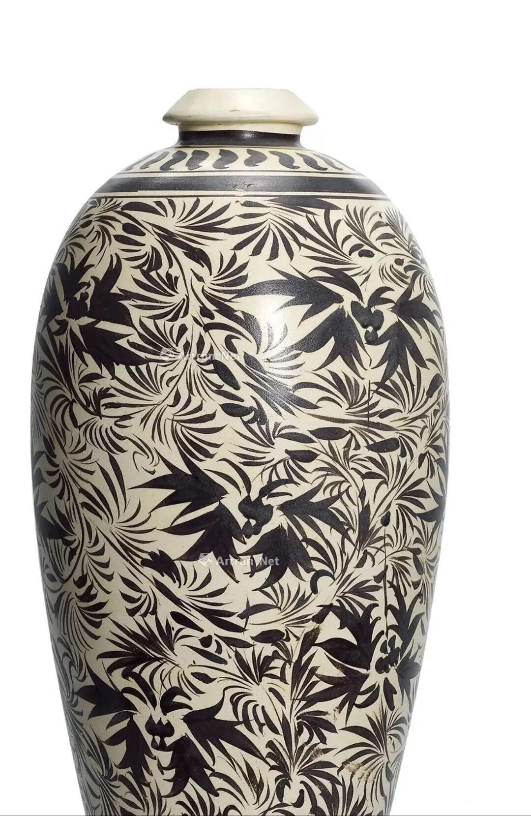 北宋(960-1127) 磁州窑白釉黑彩划花牡丹纹瓶