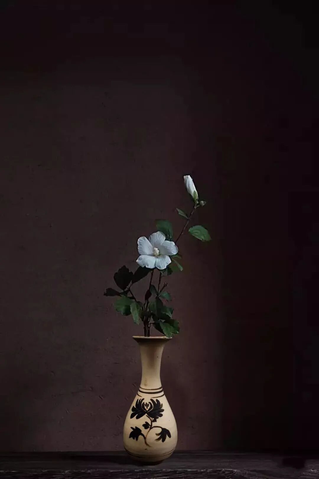 磁州窑白地黑绘纹饰具有黑白分明的装饰色彩。磁州窑白地黑绘装饰色泽一致,无重叠,采取剪影和白描的装饰手法是其主要的艺术特征。由于白地黑绘装饰中所使用的颜料为斑花石料,其成色需要一定的厚度,太薄就容易烧成后失色或色寡,所以白地黑绘装饰只能采取剪影和白描的装饰手法,靠形态的宽窄、粗细、疏密、大小及点、线、面的穿插组合关系来求得黑白灰的色调变化。因此,这使白地黑绘装饰与自然形态之间有了明显的差异,也与水墨的渐变和青花的蓝白装饰有了明显的区别,即具有了平面化的装饰艺术语言,形成了简朴、素雅的黑白装饰艺术风格。磁州窑白地黑绘装饰艺术在自然而然之中便完成了对自然的超越。