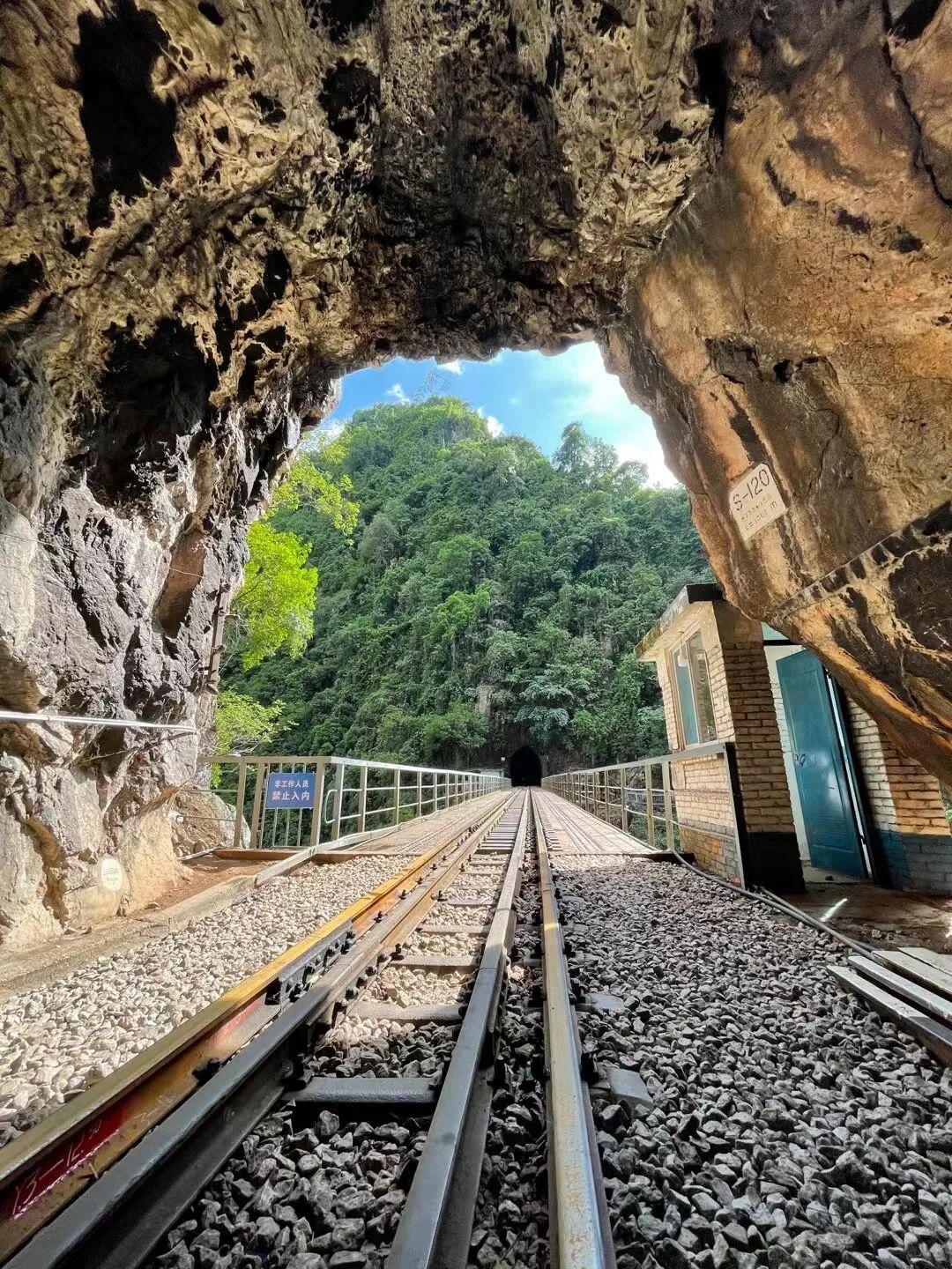 刘晓波中国古建博物馆、北京石刻博物馆优秀讲解员。文化行走人、走遍全国石窟寺,佛造像壁画艺术、古代建筑研究者。常年讲授《敦煌石窟艺术系列8讲》《中国民居》等课程。文化、古建、旅行、美食达人。可可爱爱的“米其林”火车,全国仅存一辆,藏于云南铁道博物馆。它曾在滇越铁路上服役了70年(1914—1984),在1914年速度已经达到了100km/h,同时期在滇越铁路上奔跑的蒸汽机车时速仅有30公里每小时,简直就是百年前的“高铁”。它的独特之处,在于车轮不是钢铁,而是米其林公司制造的橡胶可充气轮胎,这也是得名“米其林”的原因。它是滇越铁路上唯一还在运营的客运火车,始发站在曾经的云南第二大城市——开远,“东风21型”车头是内燃机车,车厢为绿皮车厢,共5节,其中一节为软座,其余四节为硬座。最高时速60km/h,轨道是米轨,比1435的标准轨窄了三分之一。行程单边距离11.6公里,全程约45分钟,加上终点停的20分钟,往返需要两小时。路上会经过6个隧道,7个站点,每个站停一分钟供人上下车。