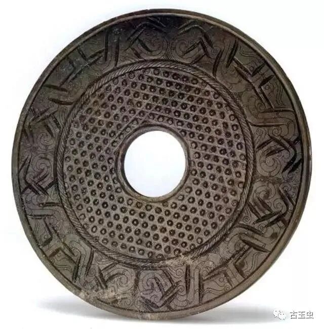 我们的古人从新石器时代就开始崇尚玉器。《荀子·德行》说:“夫玉者,君子比德焉。”荀子是战国末期人,和这块大玉璧的时间差不多。大概成书于两汉时期的《周礼.春秋.大宗伯》也记载:“以玉作六器,礼天地四方。以苍璧礼天,以黄琮礼地,以青珪礼东方,以赤璋礼南方,以白琥礼西方,以玄璜礼北方。