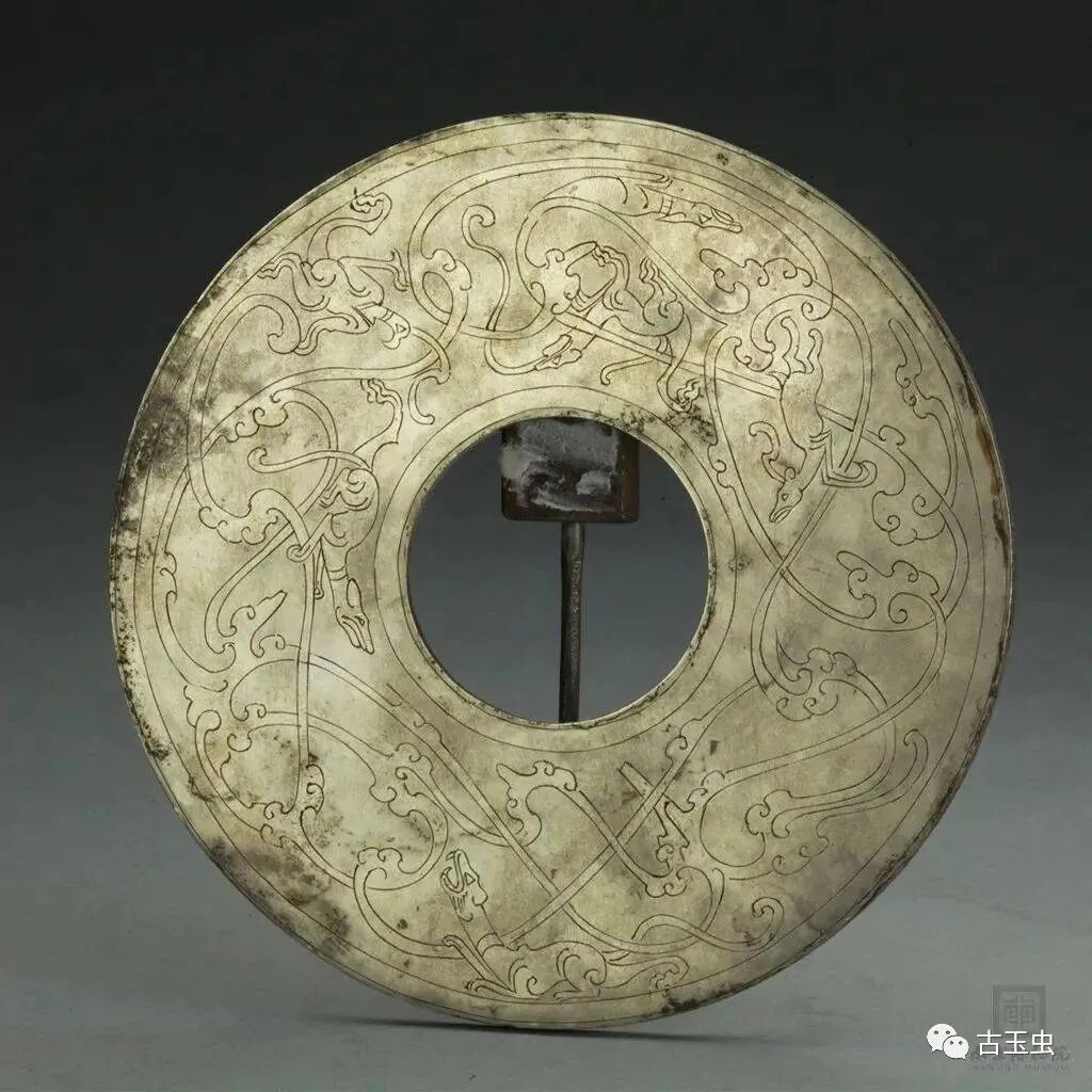 这两块出土于河南淅川下寺的玉瑗和玉璧,刚好可以看出春秋时期的蟠螭纹向后面双龙纹过度的过程。