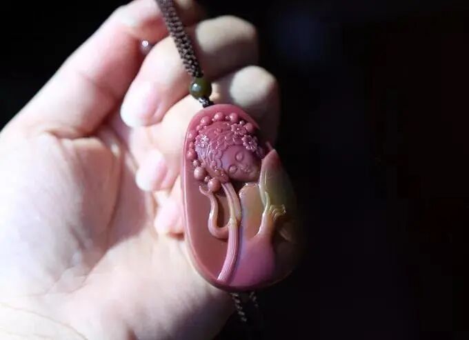 和田玉里的粉色玩家接触的并不多,所以很多人都不认识。今天就来聊一聊这个冷门玉种——桃花玉。桃花玉也有叫粉玉,当地人把它称为“砂子玉”,我们称之为桃花玉籽料,是一种直闪石玉。籽料桃花玉属于直闪石玉和籽料沙枣青同属一个构造。油润性不错,玉质细腻,颜色从淡粉色到深粉色。现在很受玩家们的喜爱。不过真正颜色好看,玉质又不错的桃花玉籽料比较少见,要么玉质差很不干净,要么颜色不好看。作为一种直闪石玉,桃花玉也有着它独有的特征:丝绢状结构,拉丝条纹,像绸子一样的表面!而且桃花玉籽料多块度较小,块度大的很少见。多有一些黄皮,或者说黄色的杂质。目前市场上发现的桃花玉只有籽料,玉质细腻油润,颜色也比较讨人喜爱。籽料桃花玉在这两年开始走红,这种比较独特的颜色及玉质,市场上多用和田桃花玉做成各种小件饰品或者小雕件,比较受女性朋友的欢迎。因为不是和田玉的主流颜色,所以和田桃花玉的价格也就相对不高。蔷薇辉石:蔷薇辉石也在很多地方被冠以“桃花玉”的美名!在台湾被称为“玫瑰石”,其实它根本不属于透闪石,是一种呈现玻璃光泽的石英岩。蔷薇辉石质地粗糙,一般能看到很明显的颗粒状物质,颜色往往并不单一,外表分布白色,黑色斑点,当然也有非常艳丽的粉红色。蔷薇辉石它的产量巨大,而且价格也很低。国内很多地方都有生产,产于北京昌平,青海省祁连山。如果商家说是桃花玉,你首先要判断是石英岩还是直闪石。粉色独山玉:独山玉也称“南阳玉”或“河南玉”,它的硬度几乎可以和翡翠相比,所以一些国外的地质学家称为“南阳翠”。独山玉的颜色非常丰富,不过,粉色的独山玉是市面上非常少见的,粉色的独山玉颜色比较杂,里面含有不少的铁、锰、铜元素,所以因为颜色又称“芙蓉红”。外表一般都是粉红色或者芙蓉色出现,深浅不一,一般是微透明或者不透明。盐源玛瑙:它作为南红玛瑙的兄弟品种,在近几年的玉石珠宝市场开始崭露头角。有时候也会被用作和田玉的替身。盐源玛瑙品种多样,色彩丰富,有黄色、绿色、红色、黑色、蓝色、紫色等等,质地细腻,具有和南红一样的润泽度。因其质地坚硬,韧性好,雕刻不易崩口,所以很适合做雕件。除了上面的蔷薇辉石、粉色独山玉,在市场我们还经常能看到一些粉色石头的存在,外表很像是和田桃花玉籽料。但细一看的话,石性非常大,而且颜色并不漂亮,很多人也把这种粉色的石头当玉石来卖,大家要留意了哦!