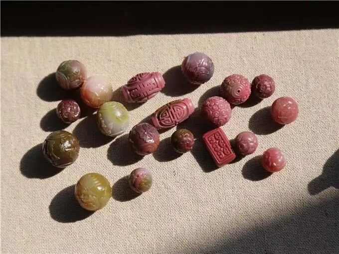 和田玉颜色种类有很多,比如白、绿、黄、青、红、墨等等。但是粉色系和田玉你见过吗?这里的粉色不是青海玉里的藕粉料,而在籽料里的一种类似桃花的粉色。