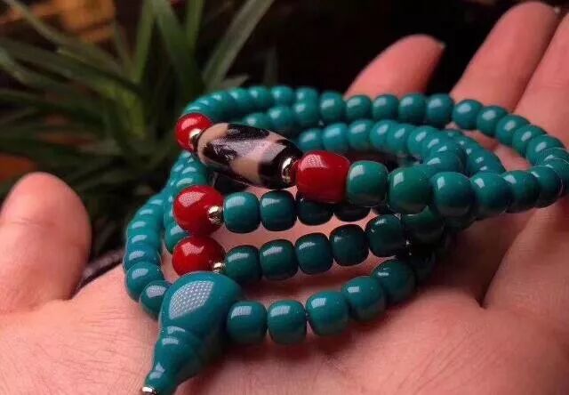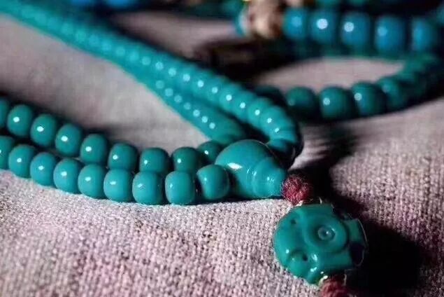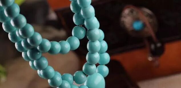 我们可以通过肉眼直接观看松石外表,高瓷的松石,是有一种高档陶瓷的釉质感,并且反光强烈。顶级的高瓷玉化料松石,给人最直接的感觉就是表面润莹,很有光泽感和凝脂感,看起来晶莹透亮,温润如玉一般。瓷度不够的松石,光泽暗淡,反光不明显。如果是泡松,几乎是没有光泽的,更不说反光了,就跟粉笔差不多。瓷度越高的松石声音越清脆悦耳。比如松石串,我们在盘玩的时候,珠子与珠子之间会发出碰撞的声音,瓷度高的松石发出声音清脆悦耳,听起来也很舒适。而瓷度不够的松石,发出的声音闷闷的,甚至有点聒噪感。极品玉化料松石,拿在手上比较有分量,握在手里有种随时要溜走的感觉,非常光滑细腻。但瓷度低的松石,不仅重量不会太重,拿在手里还会有粘手的感觉。我们知道,密度跟重量有着直接的关系,相同尺寸的珠子,克重越大密度也就越大,这是毋庸置疑的,从某种意义上来说,瓷度也是松石密度。所以说我们可以通过称重来看松石的瓷度高低,如果一块松石体积很大,但是重量不高,那么瓷度也不会太高。把松石泡在水里观察。松石泡在水里会有气泡产生,气泡越大越多,则瓷度越低,反之则越高。这是因为松石的表面有肉眼看不到的细孔,瓷度低的松石,细孔会更大,水分会很快渗入松石内部,产生气泡。并且瓷度低的松石在水里泡过之后,会很快变色,瓷度越低变化越明显。说到这里有人可能要问了,都说高瓷蓝是评判松石好坏的标准,这里只说了瓷度,不考虑颜色,这样分辨靠谱吗?一般高蓝的松石都是高瓷,但是高瓷的松石并不一定都是高蓝。不要被表面所迷惑了,颜色和瓷度都很重要。但相比而言瓷度更为重要,因为瓷度高的松石可以在后期的盘玩过程中慢慢玉化包浆,颜色也会变得越来越纯正好看,所以说仅从颜色判断是不够严谨的。