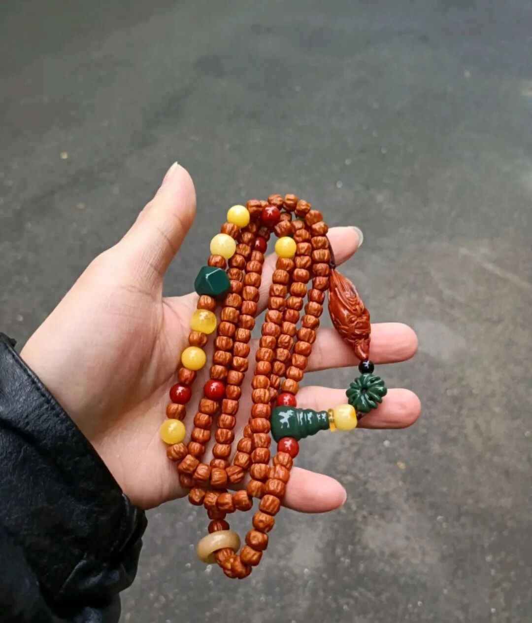 108可以说文玩圈人手一条,大家的搭配也是千奇百怪,各有各自的特点,但是能把各种配饰搭配到一起的,还是少数。