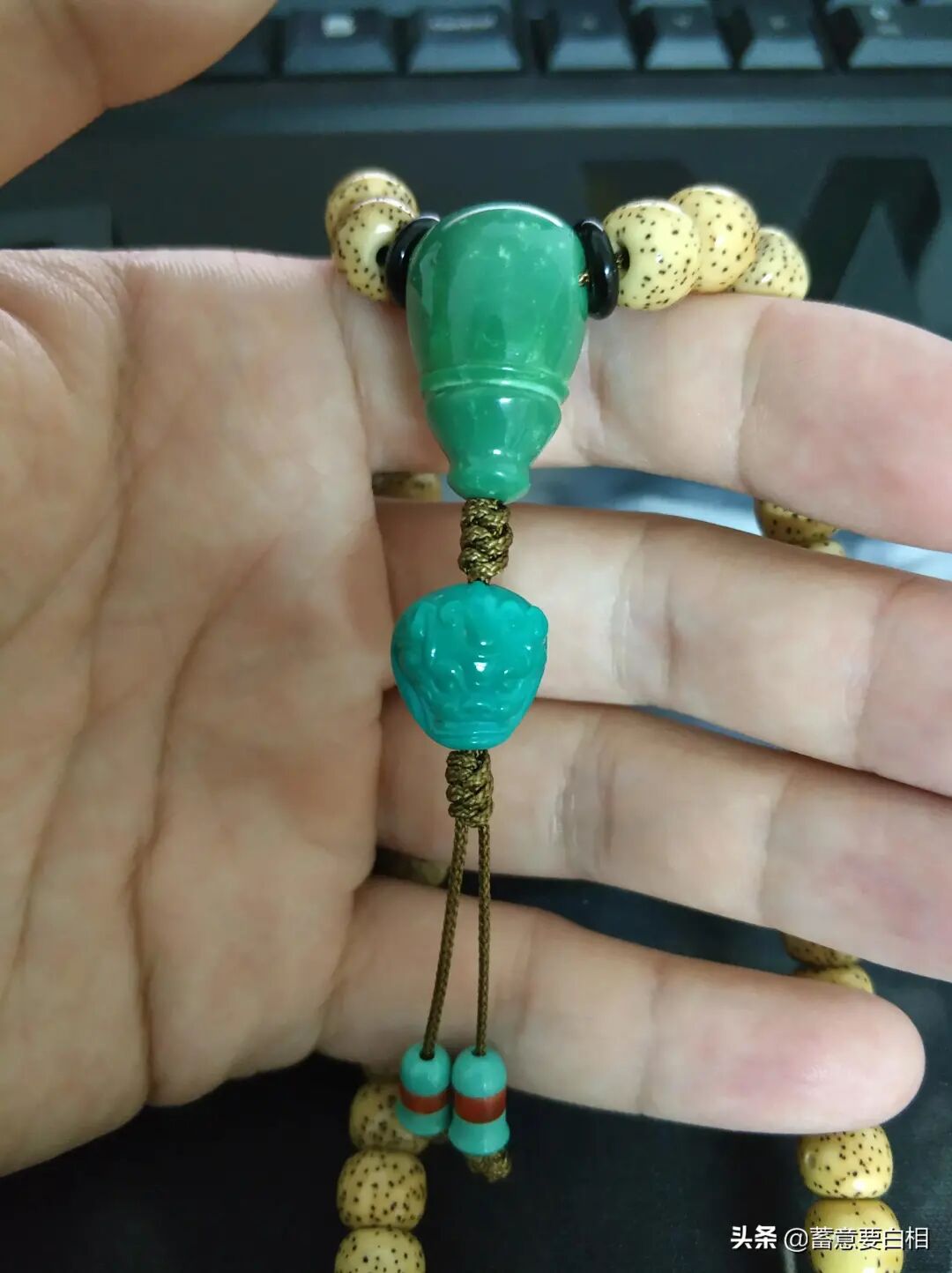 一般来说,手串的主珠最小,然后其余珠子的尺寸层层加码。腰珠一般比主珠大1-2mm即可,顶珠要大2-3mm,至于佛头,则是大4-5mm。如果隔珠的材质没问题,隔片可以选个好看点的,比如绿松隔片、蜜蜡隔片。