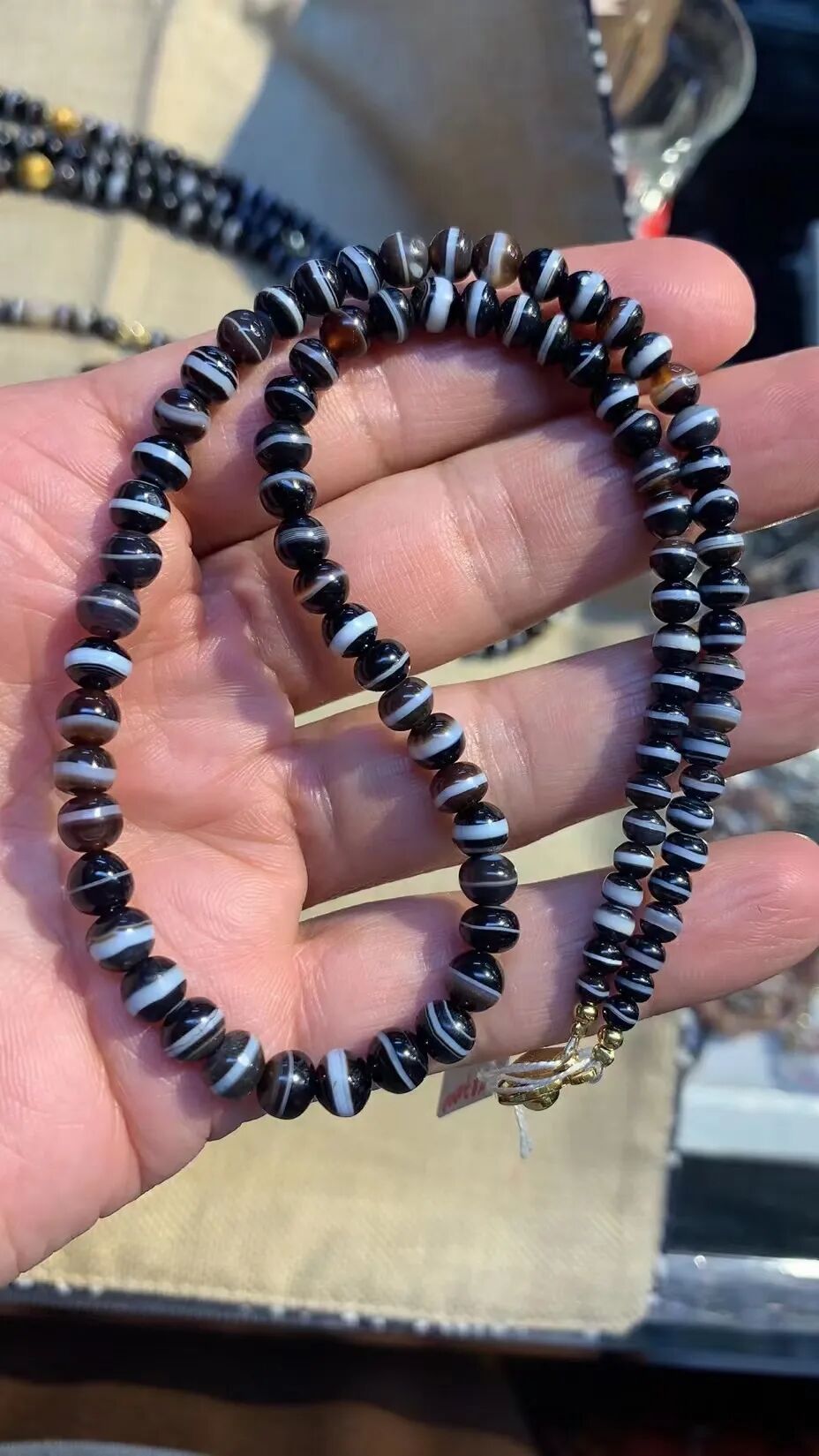 也有碧玺、绿松石、玛瑙、蜜蜡、伽楠香,以及沉香、紫檀等珍贵木料质地的,都是根据服装颜色选择合适、鲜明的手串佩戴,既增加美感,又体现富贵。