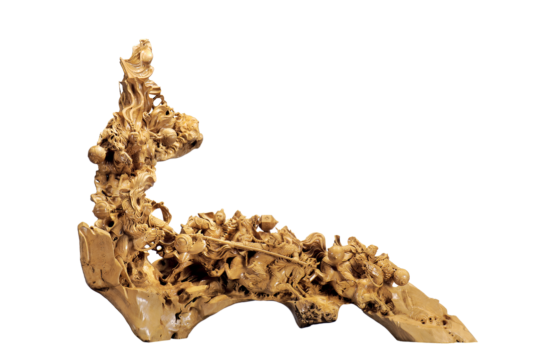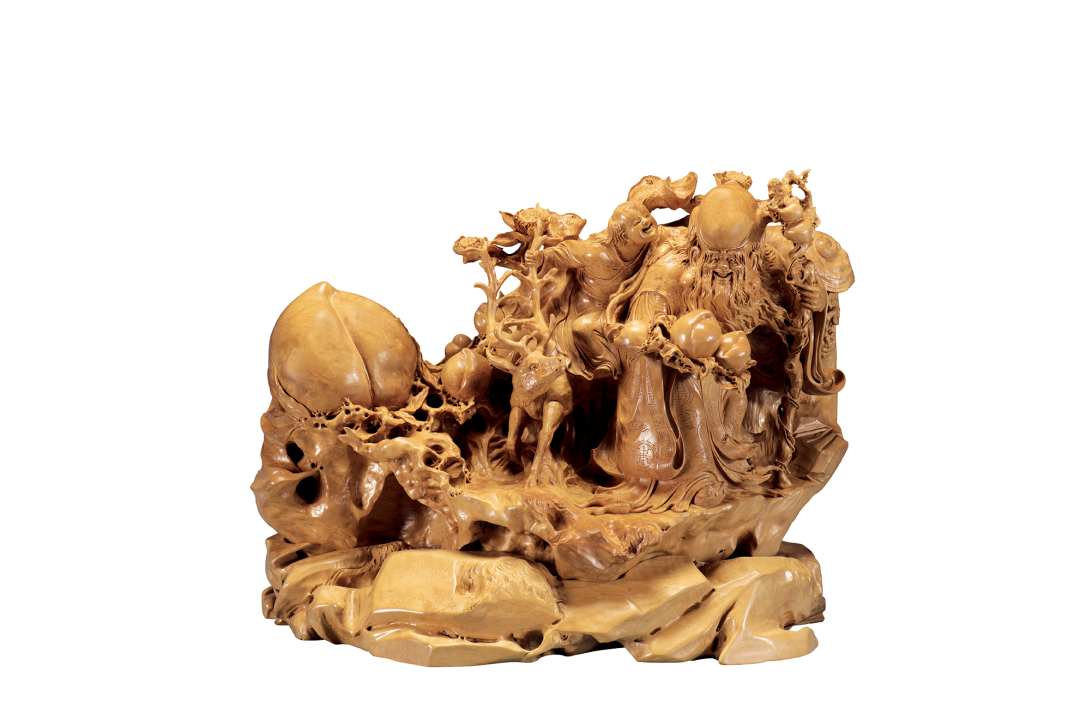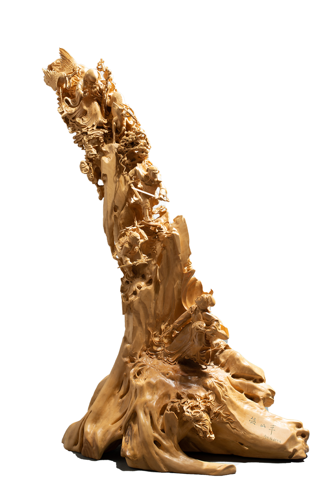 作品取材于中国十大古典悲剧《雷峰塔》。郑松强大师巧妙地把盗仙草这一细节,通过白娘子、南极仙翁、白鹤童子等人物,以及周边的仙山摩岩、奇花异草,再一次生动鲜活地呈现出来。整体布局紧凑,刀法娴熟。每个人物的造型不仅精雕细琢,更个性鲜明,情感丰满。整件作品流淌着人性的光辉,朴实真诚,深受行家和社会各界的好评,在第十届中国工艺美术大师作品暨国际艺术精品博览会上获得“天工艺苑·百花杯”中国工艺美术精品奖“金奖”。