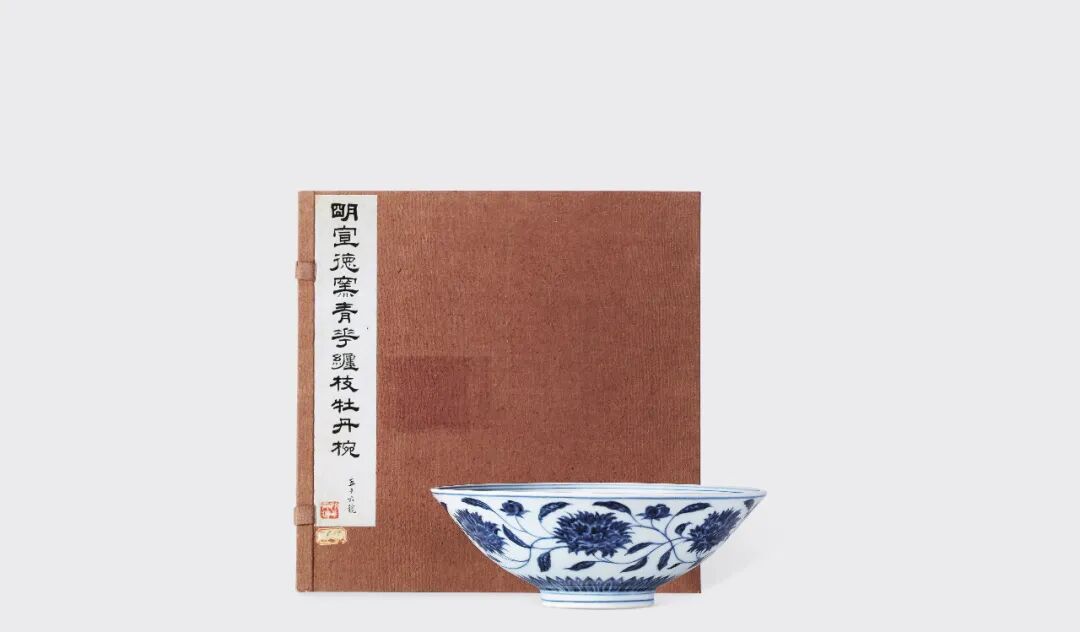 此碗为明代青花名品,传世甚少,至为名贵,传世作品多见博物馆藏,市场流通极少;其造型、尺寸及纹样皆与两岸故宫及上海博物馆藏品相近,台湾馆藏一例可见(台北故宫博物院,《明代宣德官窑菁华特展图录》,图版61号);上海博物馆馆藏一例,著录于《青花釉里红》,图版55号;北京故宫博物馆馆藏一例,为清宫旧藏(著录于北京故宫博物院,《故宫博物院藏明初青花瓷,下册》,图版142号)。上海博物馆同时藏有此式碗的雍正朝仿品,以极力模仿之姿彰显出原作无可比拟的隽永精致。