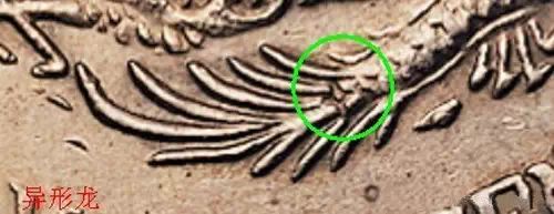 按修模周期排序分别为:异形龙体系,三角眼体系,圆眼龙体系。每个龙系下面又有几个细版,异形龙有三个版,三角眼有两个版,圆眼龙有三个版(均为重要版别)。从粗略的形态上来看的话,或许有人认为异形龙和三角眼有些接近,其实不然,如果大家细心的话,“银元网”就会发现异形龙和三角眼至少存在着五大明显差别,这些差别绝非局部修模能得到的。第一:大腿,,异形龙龙身偏瘦,并且大腿明显粗壮突出,而三角眼则缺乏了这个明显突出的大腿。