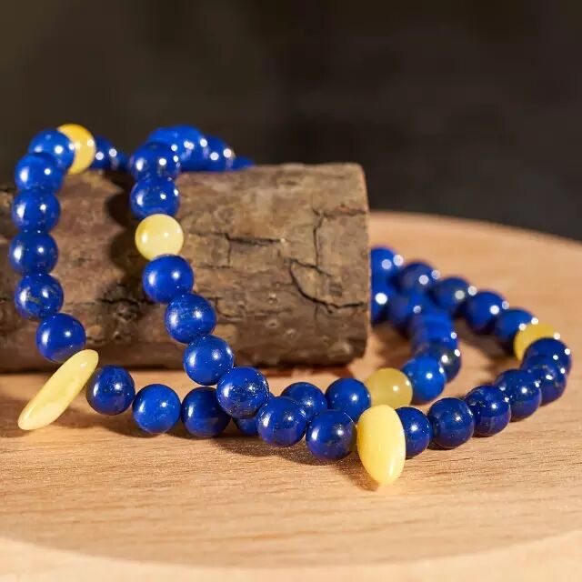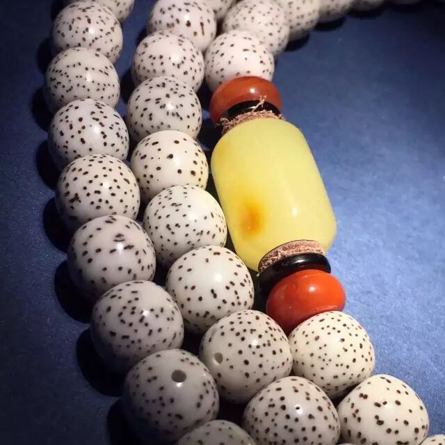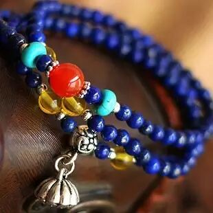 如果喜欢蓝绿色配珠,青金石、绿松石当然是最佳选择。有些浅色的手串,如菩提根、砗磲等,经过青金石配珠的衬托之后显得十分抢眼。