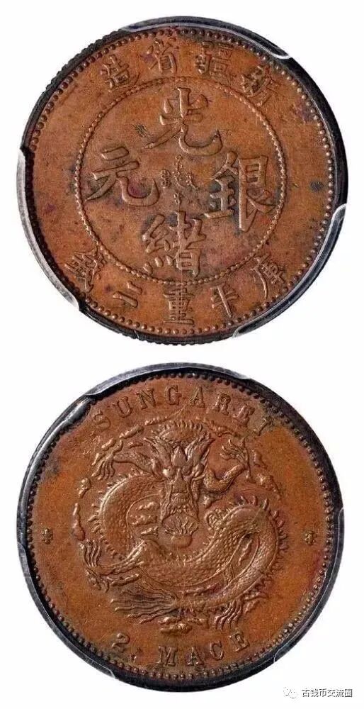 ⊙简介:1906年新疆省造光绪银元背“SUNGAREI”库平重二钱银币铜质样币,齿边,德国奥图·拜赫(Otto Beh)公司雕模试铸,目前存世仅见此一枚,殊为难得,边缘小修,PCGS SP XF Details,目前该公司评级纪录之唯一