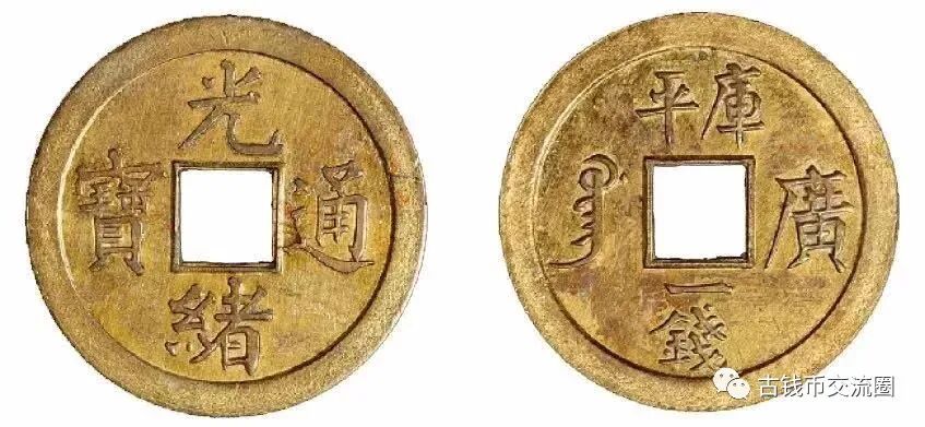 宝广局光绪通宝机制方孔黄铜样币